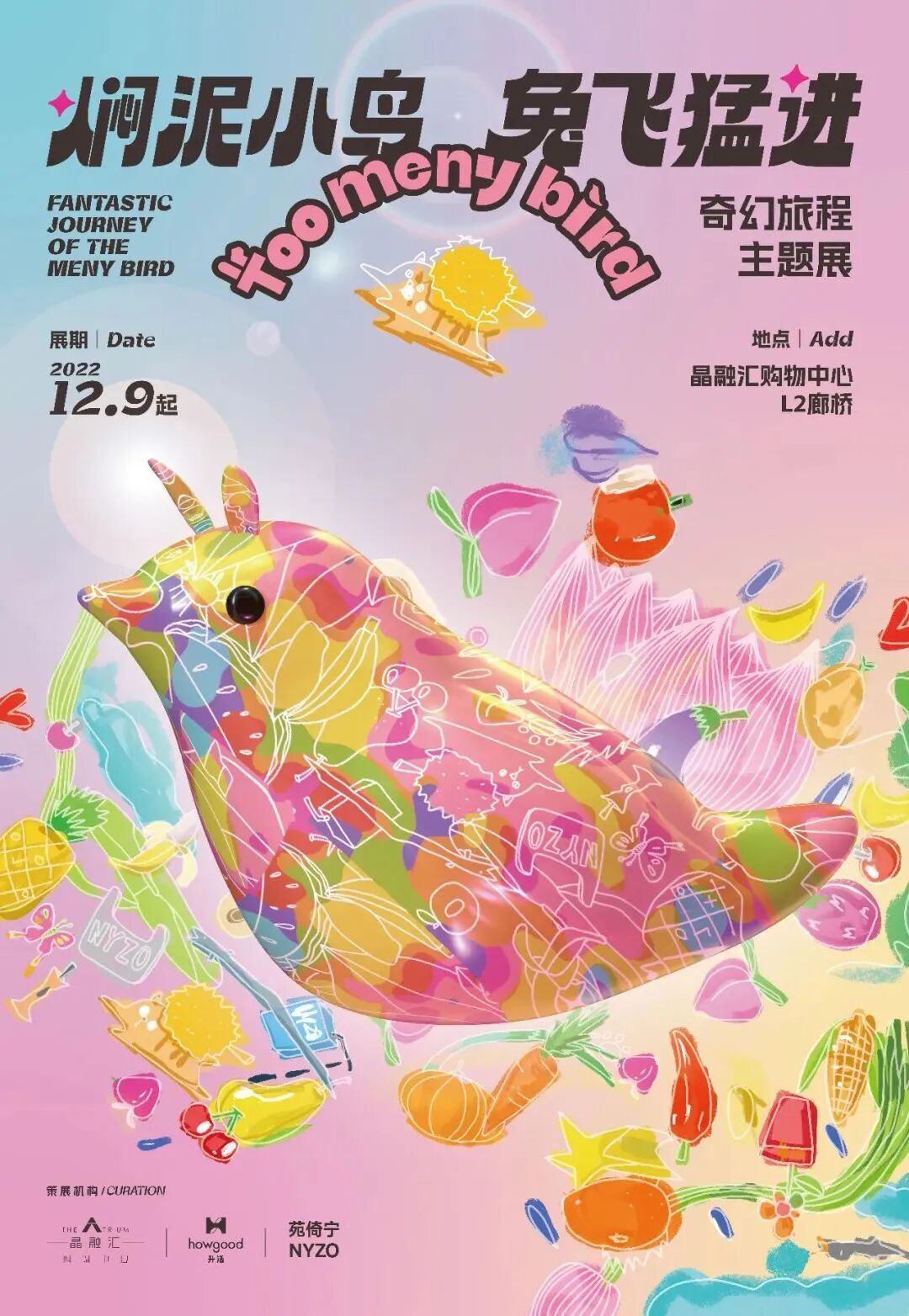 晶融汇 x 苑倚宁NYZO 『Too meny birds 焖泥小鸟,兔飞猛进!』西南首展,梦幻的颜色、可爱的焖泥,五彩斑斓的打卡板,充满童趣和梦幻,驻足观看的瞬间陷入一段奇幻的梦境。