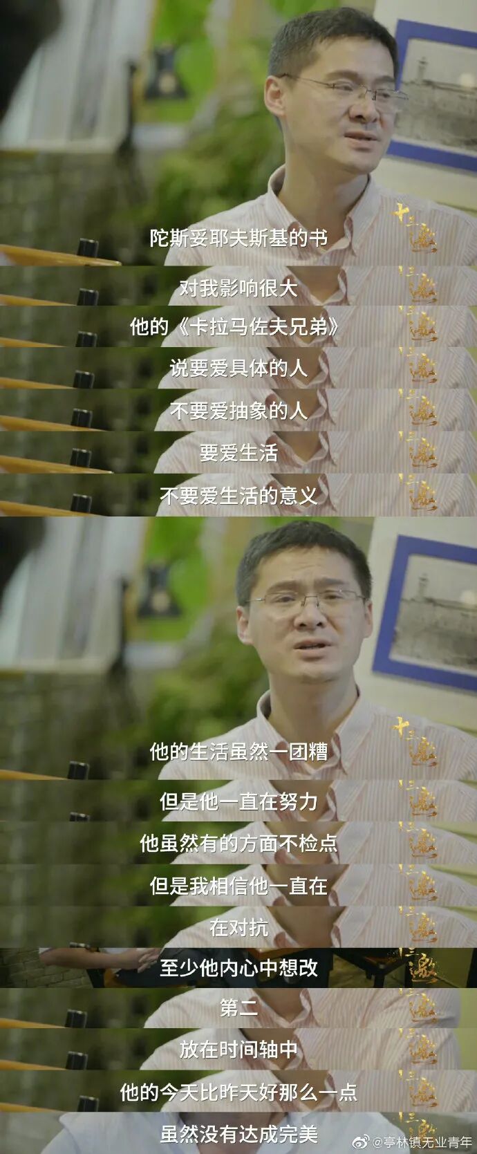 他一直对世界和生活看得相当透彻,所输出的一些观点也犀利深刻,让人醍醐灌顶,意味无穷。