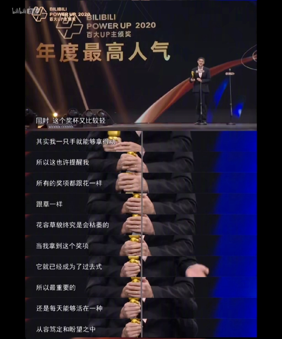 最近他的获奖感言又火了,被称为人间清醒。