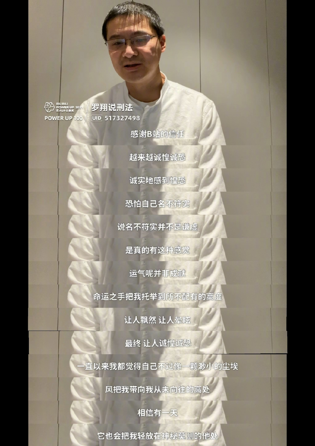 总之就是得奖后,罗翔老师没有一点自得的感觉,惶恐起来了。