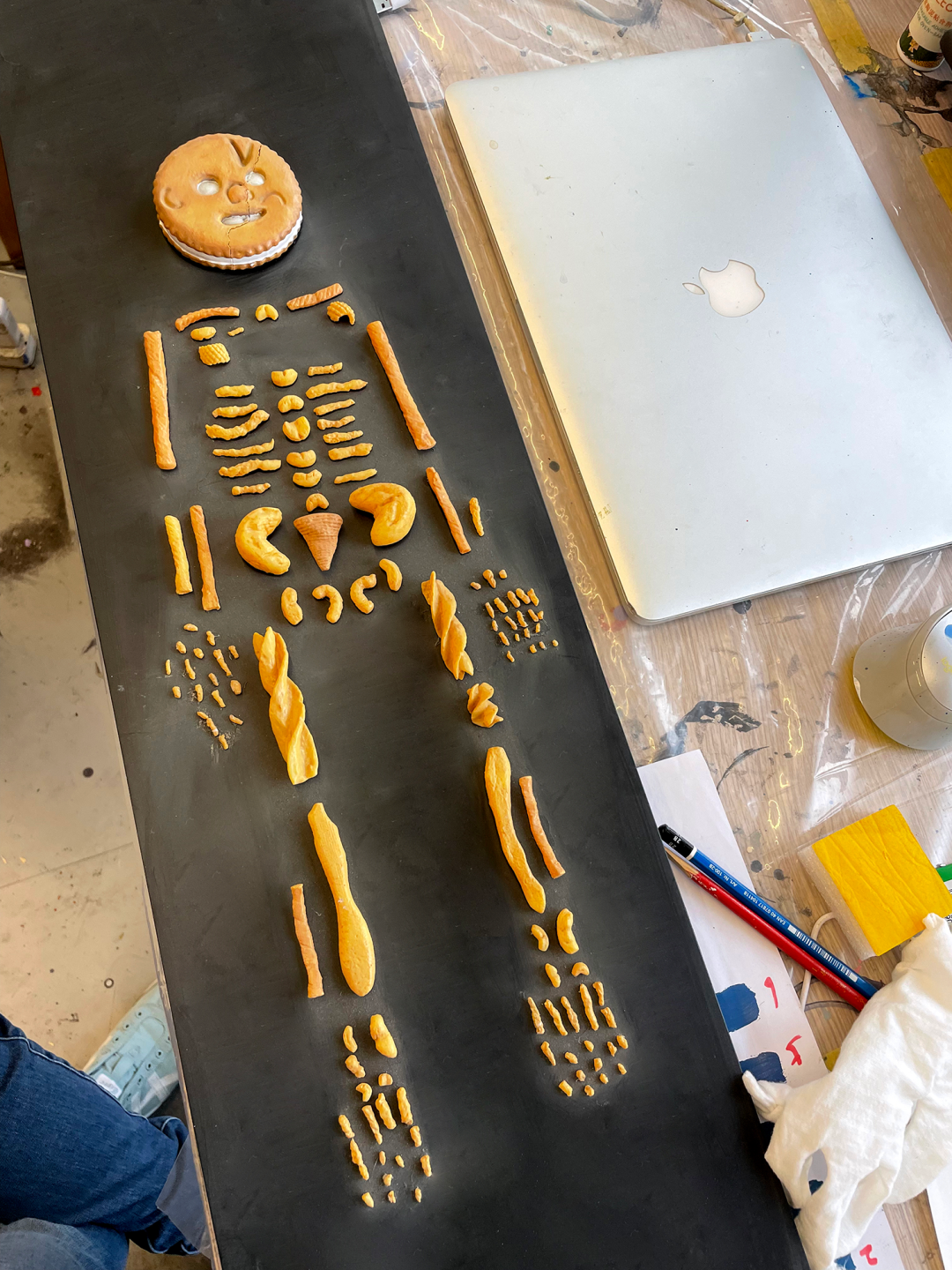 左上图:曾在陆平原个展“有情世界”中展出的饼干骷髅的小模型