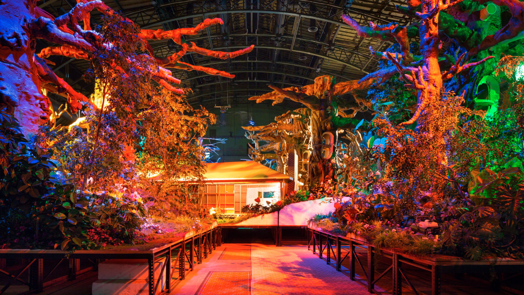 但这种空间和氛围上的整体性,有别于当红的“沉浸式”体验。随着近十年来展览作为一种生活方式的体验场从博物馆、美术馆和白盒子逐渐出圈,中国城市里的观众经常能遇见以声光电多媒体的酷炫、知名IP或潮玩为主打的所谓“沉浸式”体验,这里的沉浸往往与“打卡”连接在一起。作为文化消费品的展览沦为颇受追捧的影棚,而作品则成了背景摆设。但也有超越或更准确地说兼顾自拍需求的“沉浸式”展览,比如英国V&A博物馆近期同样以经典童话文本《爱丽丝梦游仙境》为元灵感的主题展“Alice: Curiouser and Curiouser”。这座诞生于全世界第一届万国工业博览会的综合性博物馆以精美的展陈设计著称,艺术作品与工业设计、商品、摄影、档案文献、影像、音频等一视同仁的展品经过策展巧妙编织成一体化的空间叙事体验。当陆平原投入“展览式”的创作,他就同样需要把控展览现场的一切因素:从作品的颜色到展墙的颜色,从作品的质感到地毯的质感,从作品的画面到墙纸的画面,从空间关系到灯光效果。但他也需要警惕不滑入套路化的“沉浸式”,而展览语境的差异又让它注定不具有清晰的叙事主线。除此之外,他更需要考虑的是如何调用、调用哪些视觉经验,才能达成我们现场看到的既熟悉、又陌生的形象。