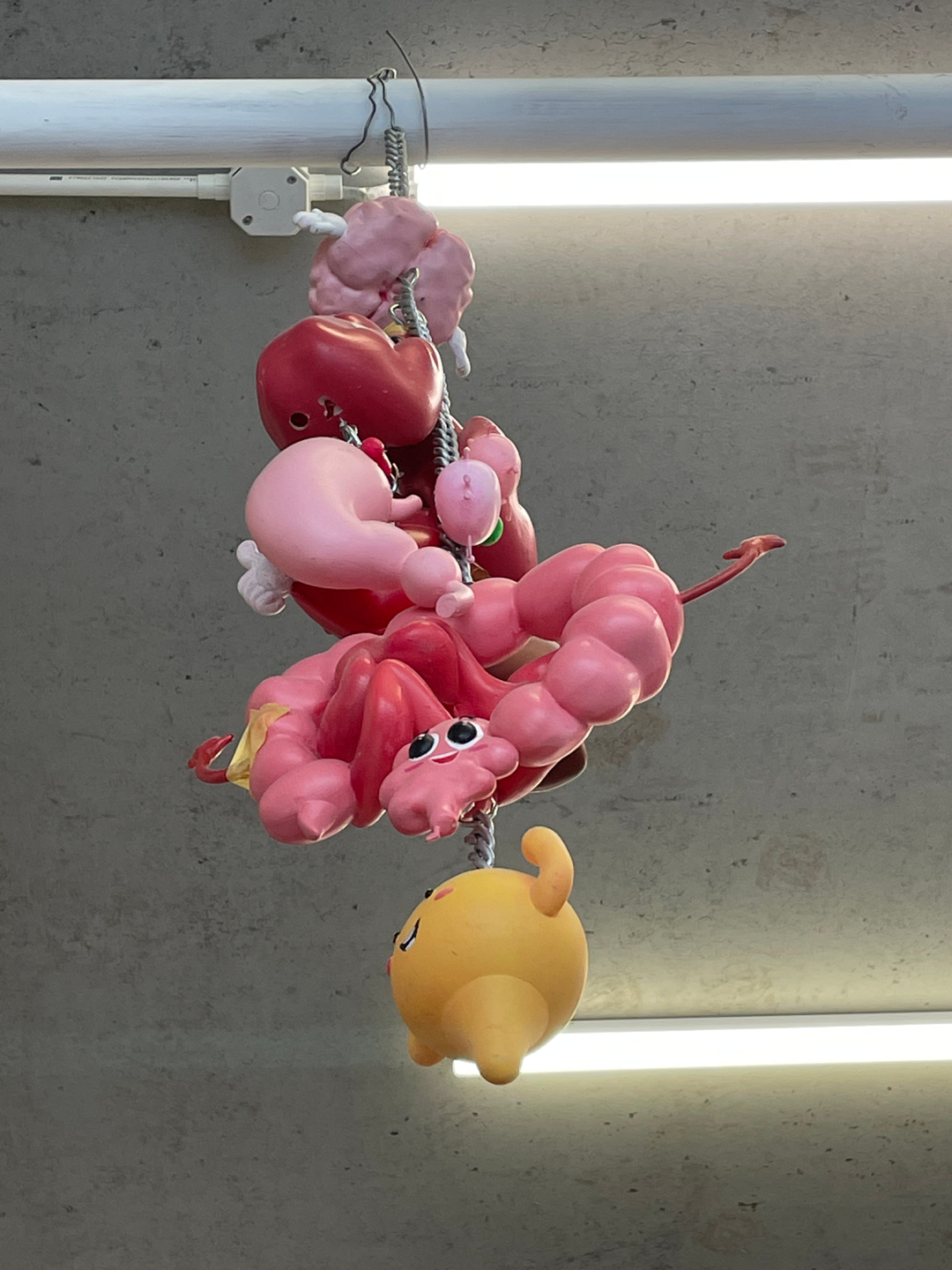 右上图:陆平原工作室里挂着一串“内脏宝宝”