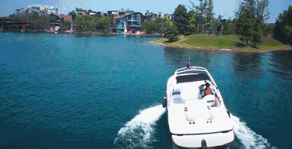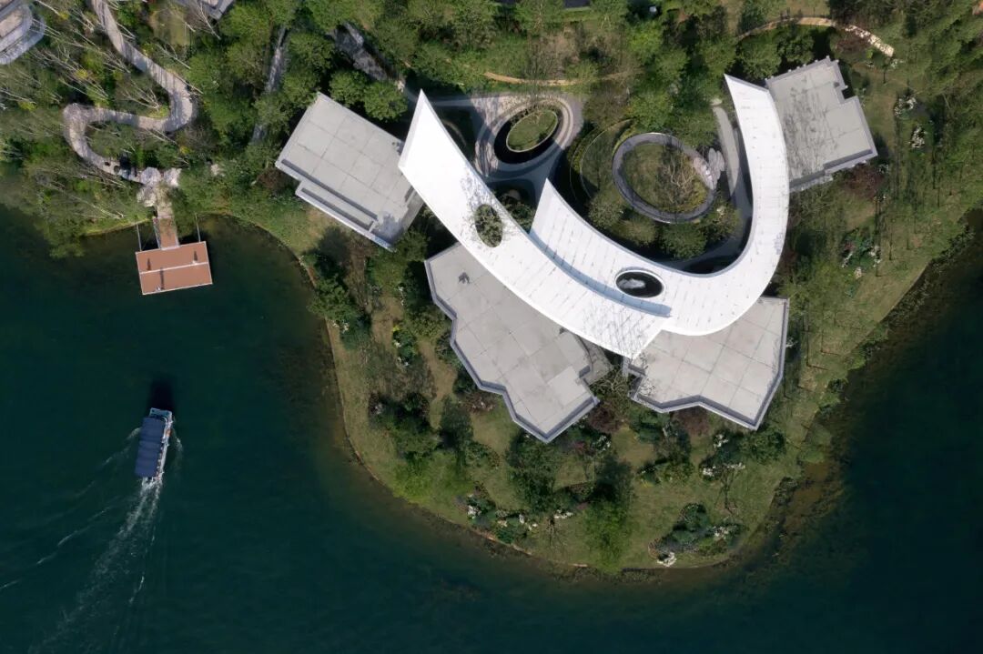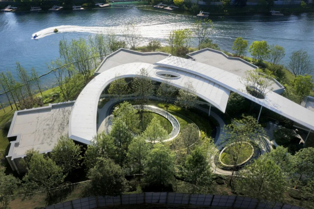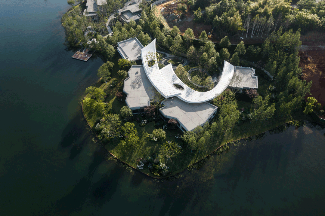 初到麓湖,游艇登岛,随着游艇浮动,变幻出不一样的故事。流动的光影谱出艺术的有机曲线,设计经由“流动”的自然语素,与“无常”的设计逻辑,将风景从外部空间移至岛内,甚至是心理空间。