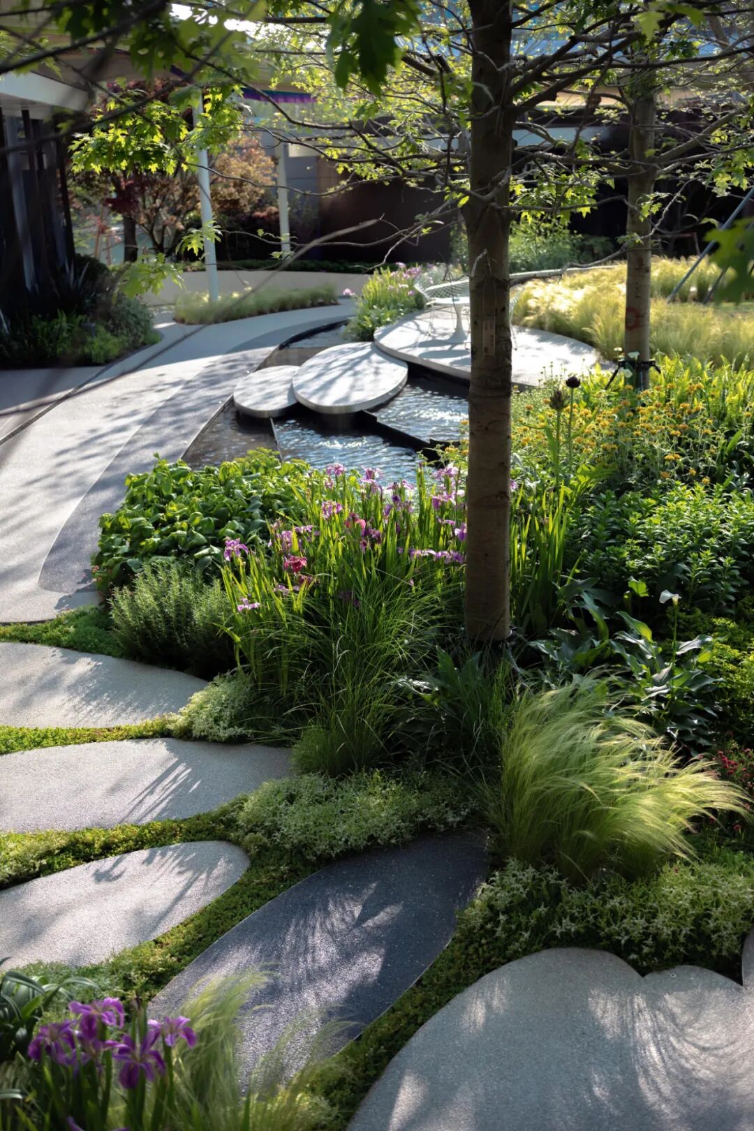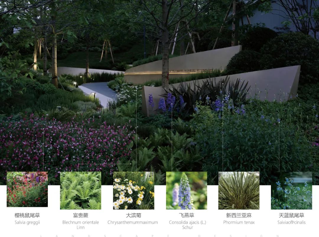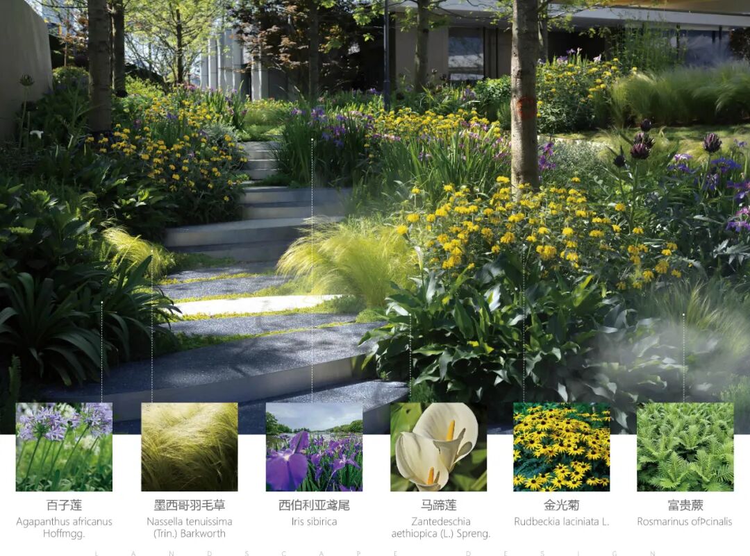 花境是营造花园空间的精灵,细腻的植物空间,变幻、延伸让上下之间不再单调,灵动的生活质感悄然蔓延,艺术化的地形打造舒适自由的栖息之所,消除人群的隔阂感。