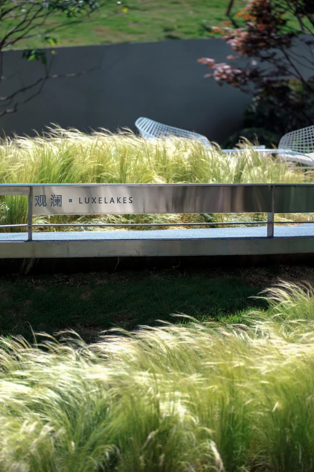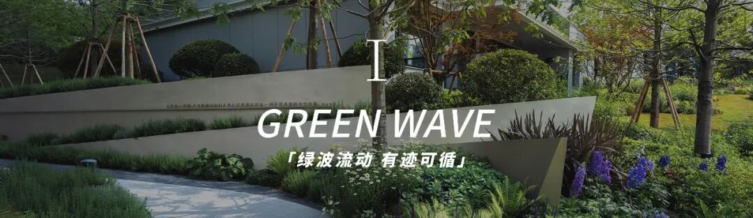 以麓湖水波为灵感,利用双层挡墙给予视觉的冲击,“力量”与“流动”的线条感,提升入口“初及狭”视觉冲击力;