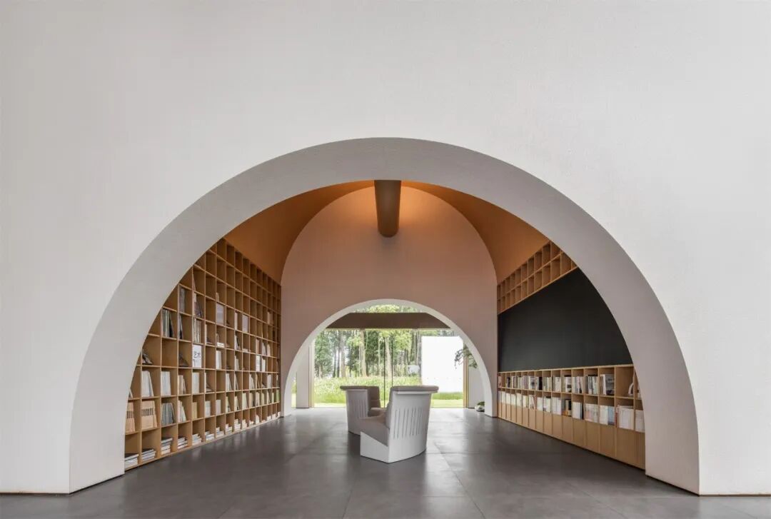 保留原结构体系,室内置入一组正交三联拱系统,既加强空间整体性,又以自然的洞穴语言呼应“脊”间自然。改造后立面均设落地玻璃门窗,内外通透,风景无限。