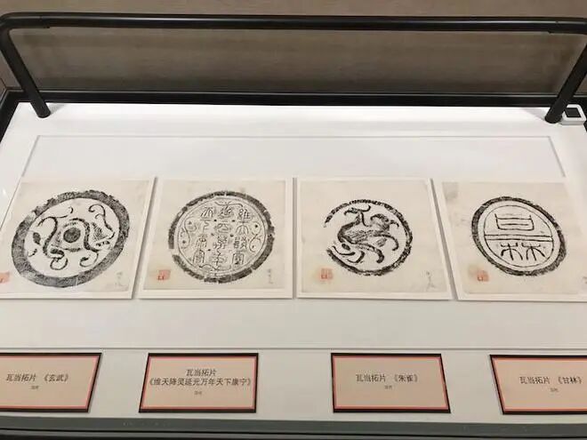 包明吉介绍,“我们之前举办过一个汉画像石拓片展。这次展现的瓦当拓片则是之前没有展过的。另外,展厅中《始康郡晋丰县□熊造——无量佛像记》比较特殊,上面有鲁迅的印章,可能是他比较满意的收藏。”
