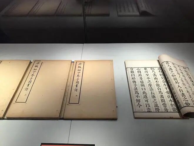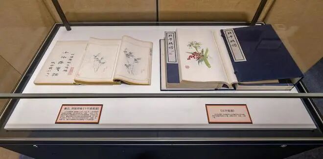 展厅现场,鲁迅参与编写的《十竹斋笺谱》和《北平笺谱》