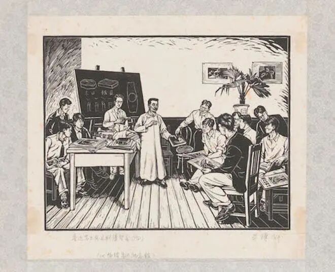 李桦《鲁迅先生在木刻讲习会》 (木刻)