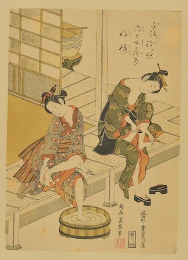 鲁迅收藏的鸟居清长《初樱廊下》(浮世绘)