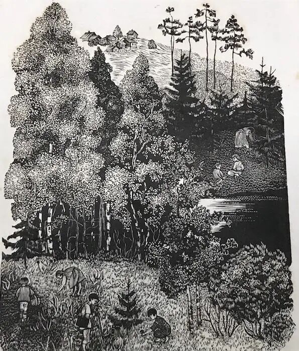 鲁迅收藏的苏联艺术家奥尔洛娃·莫恰洛娃木刻《采蘑菇》