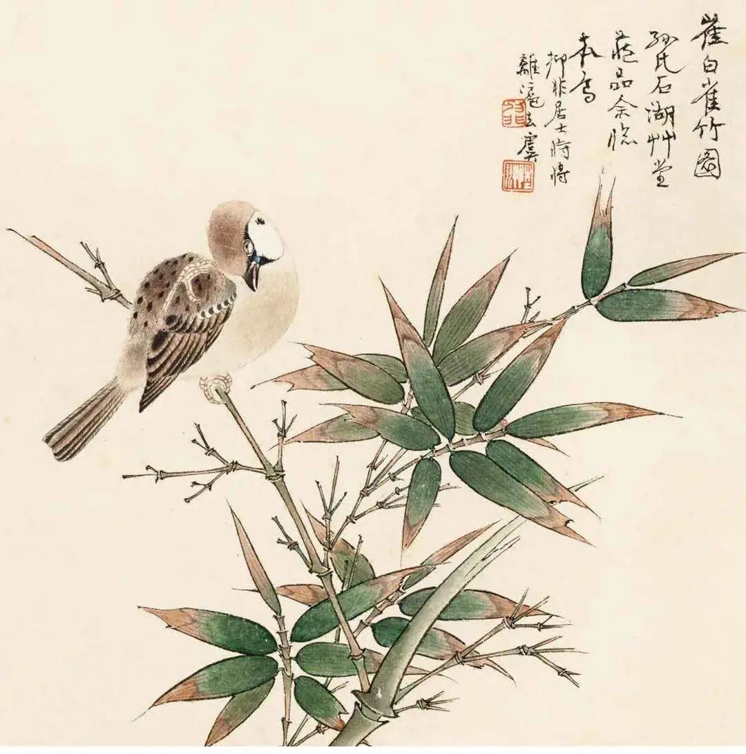 临明吕纪秋水群雀图 155cm×80cm 20世纪40年代 杭州芸廷美术馆藏