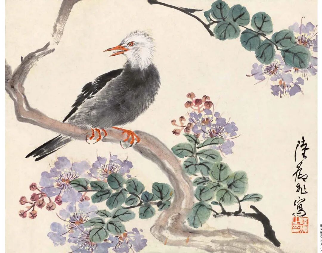 由于老家发生变故,父母都来了上海,陆翀肩头的担子一下沉重了许多。只要有空,他便不断为笺扇庄画册页扇面,以此贴补家用。他每晚画两把扇面,每把扇面仅一角五分报酬,日子过得紧巴。远亲朱屺瞻前来探视,得知表外甥陆翀的窘境,又了解到他才华横溢,便主动介绍他进刘海粟任校长的上海美专任教。刘海粟魁梧大度,擅长油画兼画中国画大写意,看了陆翀的工笔花鸟画后大为激赏。刘海粟曾说,他以后的太太如果喜欢画画,就一定让她跟陆翀学画。那时刘海粟正好是单身,大家听了只当是笑话。孰料,数年后刘海粟再娶的夫人夏伊乔正是学美术的,果真让她随陆翀学画。那年陆抑非33岁。陆翀是一位耐得寂寞的人。24岁即被聘为上海美专教授,任职达15年,并兼教职于新华艺专、苏州美专等。1959年陆抑非应潘天寿之邀,至浙江美术学院中国画系任教。