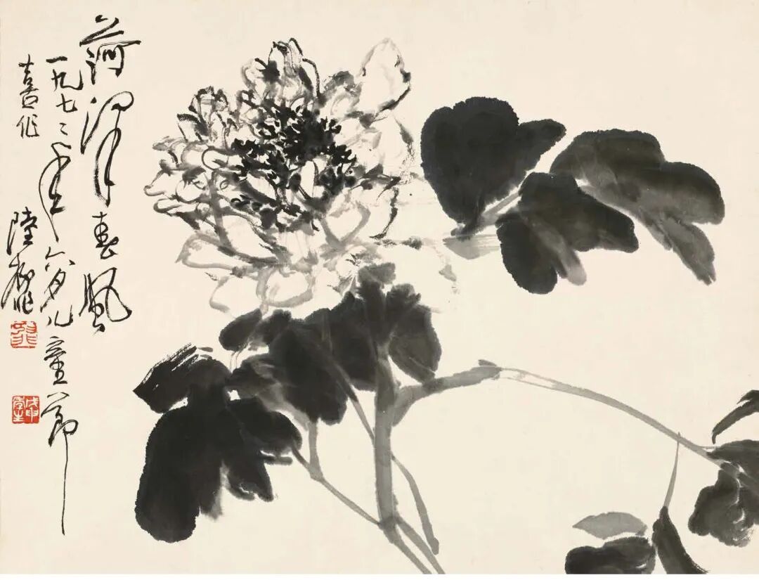 陆抑非认为,“中国画家的最基本功是书法”。其艺术进入成熟阶段之后,更加的强调以书入画。他在《从獭祭而成到信手拈来》一文中,详细的阐述了“以书入画”以及“以书入画的重要性”。“澈悟了行草书和写意画的关系,就能在笔墨上澈悟书画同源的关系。要知道,书法是画出来的好,而画却是写出来的妙。”只有很好的领悟了书法与绘画的关系,才能在具体的创作中,使画生出“写”的韵味。总的来说,陆抑非早、中期的画作以及书法都比较偏于秀丽清新,题款和画面的味道一致。陆抑非的书画随着时间发展,逐步趋向老辣沉稳。这种趋向,在书法和绘画上是同步进行的。中年以后,他主要研学孙过庭《书谱》、怀素《自叙帖》等,在草书上用功颇深。中年陆抑非的草书题款,依旧能看出早年书法的影响。线条干净、使转轻盈。这时候的线条单看每一小段,和其行楷书的线质依然接近,自七十年代开始,陆抑非在书法上有了质的飞越。字体结构开始夸张,线条更为凝练,有了一种特有的涩感和韧劲。晚期草书更加强调方折行笔,流畅中见顿挫,涩疾相兼。体势动荡,大开大合,点画饱满,具有画意。书法的飞跃,使得他的绘画用笔更富灵变,内涵更加丰富,气格得到了升华。书写线条的变化,使得他的画风有了很大的变化,成就了陆氏风格,成就了“陆牡丹”。