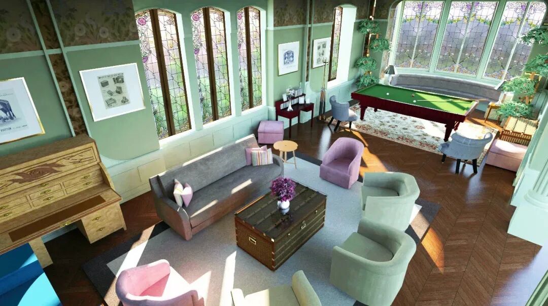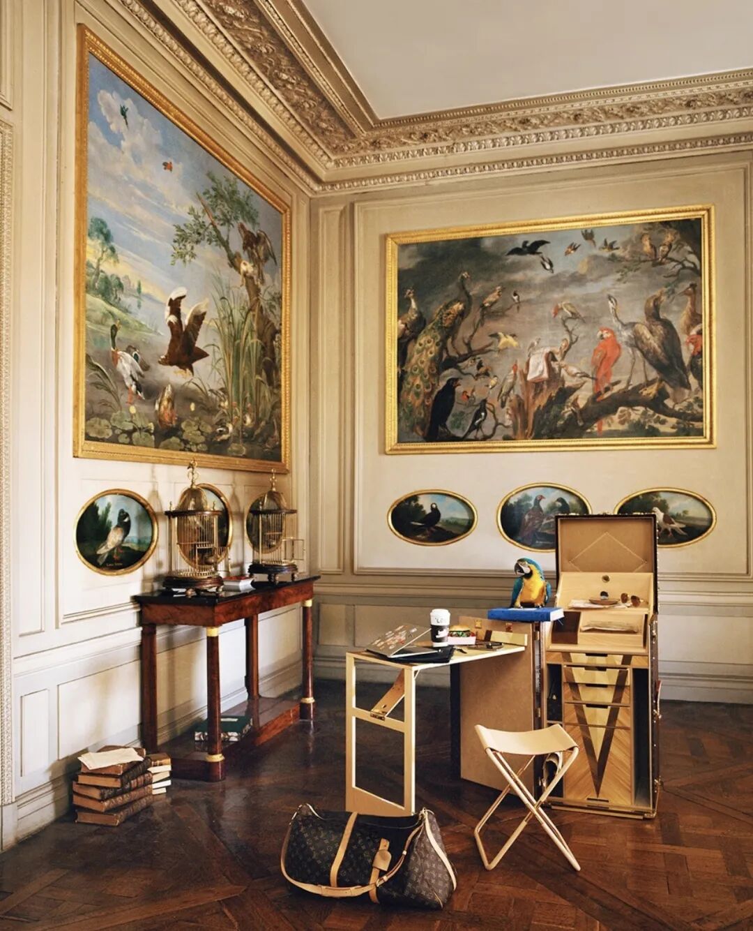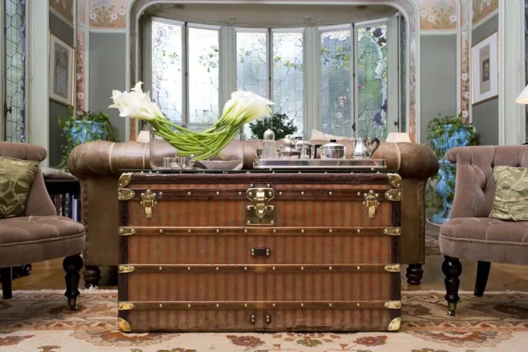 当时Louis Vuitton一家人曾经的住所,仍然保留了当时新艺术风格,可以看得出他们优雅的法式品味,平顶硬箱作为茶几桌使用,如今依旧是最时尚的家居陈列风格了。