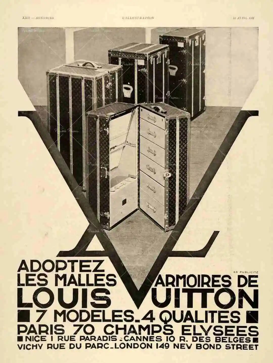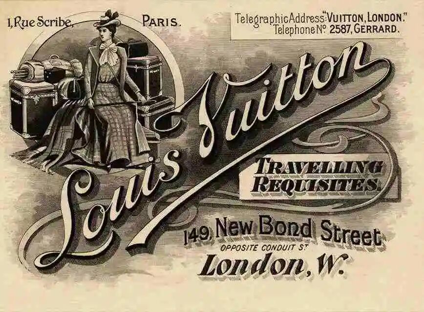 1885年,Louis Vuitton 凭着独特的商业嗅觉,开始放眼海外,在英国伦敦开了第一家海外店。这也就是为什么LV老海报上同时印着Paris和London店铺地址的原因。
