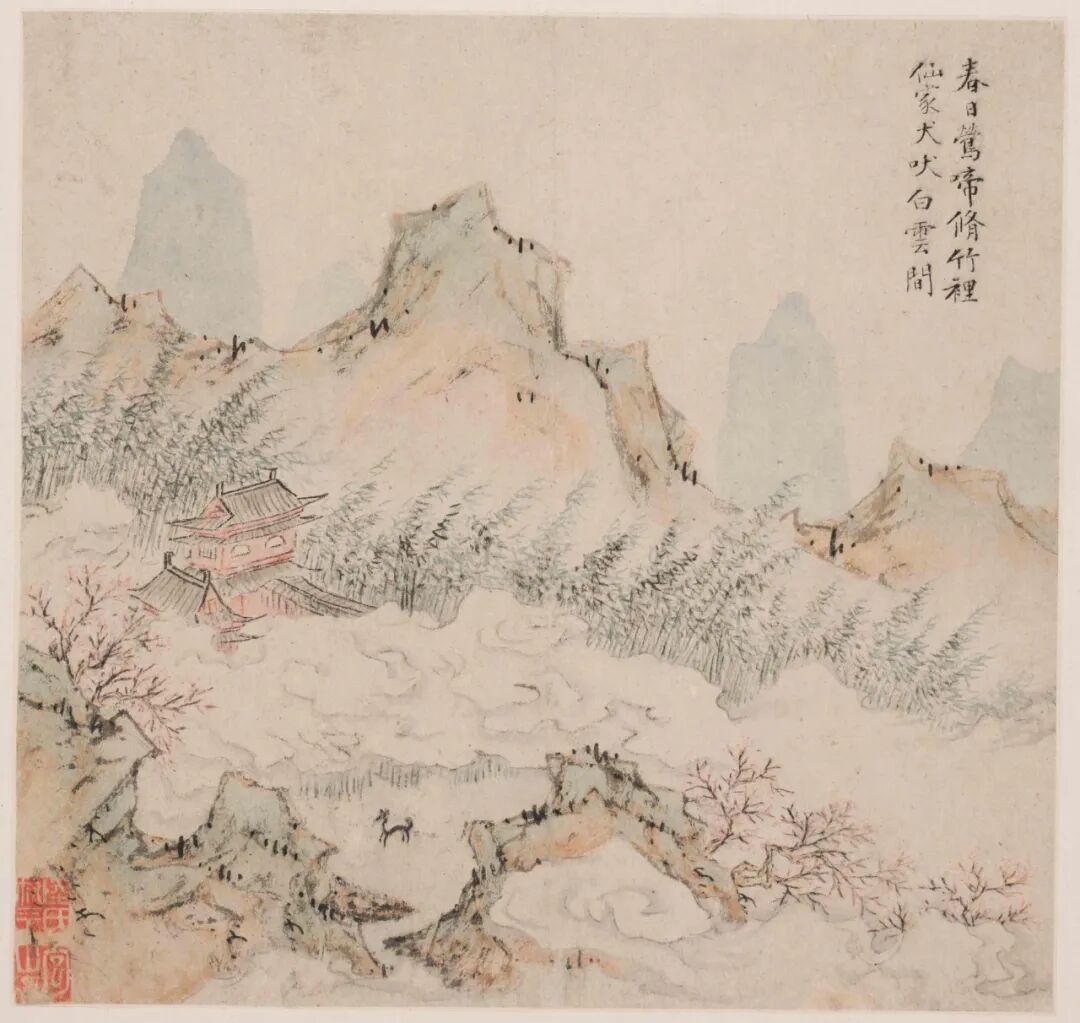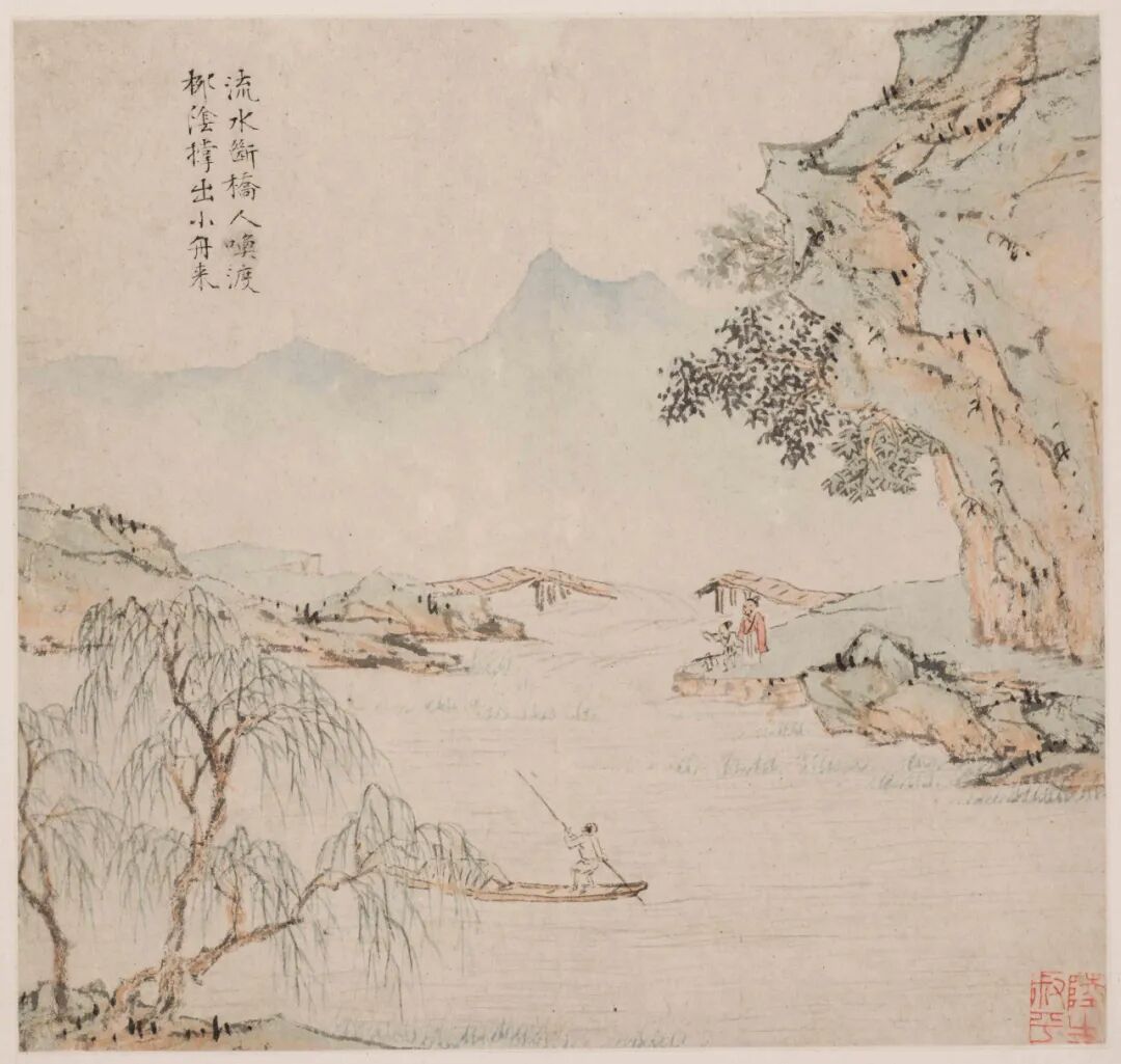 陆治山水受吴门派影响,也吸取宋代院体和青绿山水之长,用笔劲峭,景色奇险,意境清朗,自具风格,在吴门派画家中具有一定新意,与陈淳并重于世。