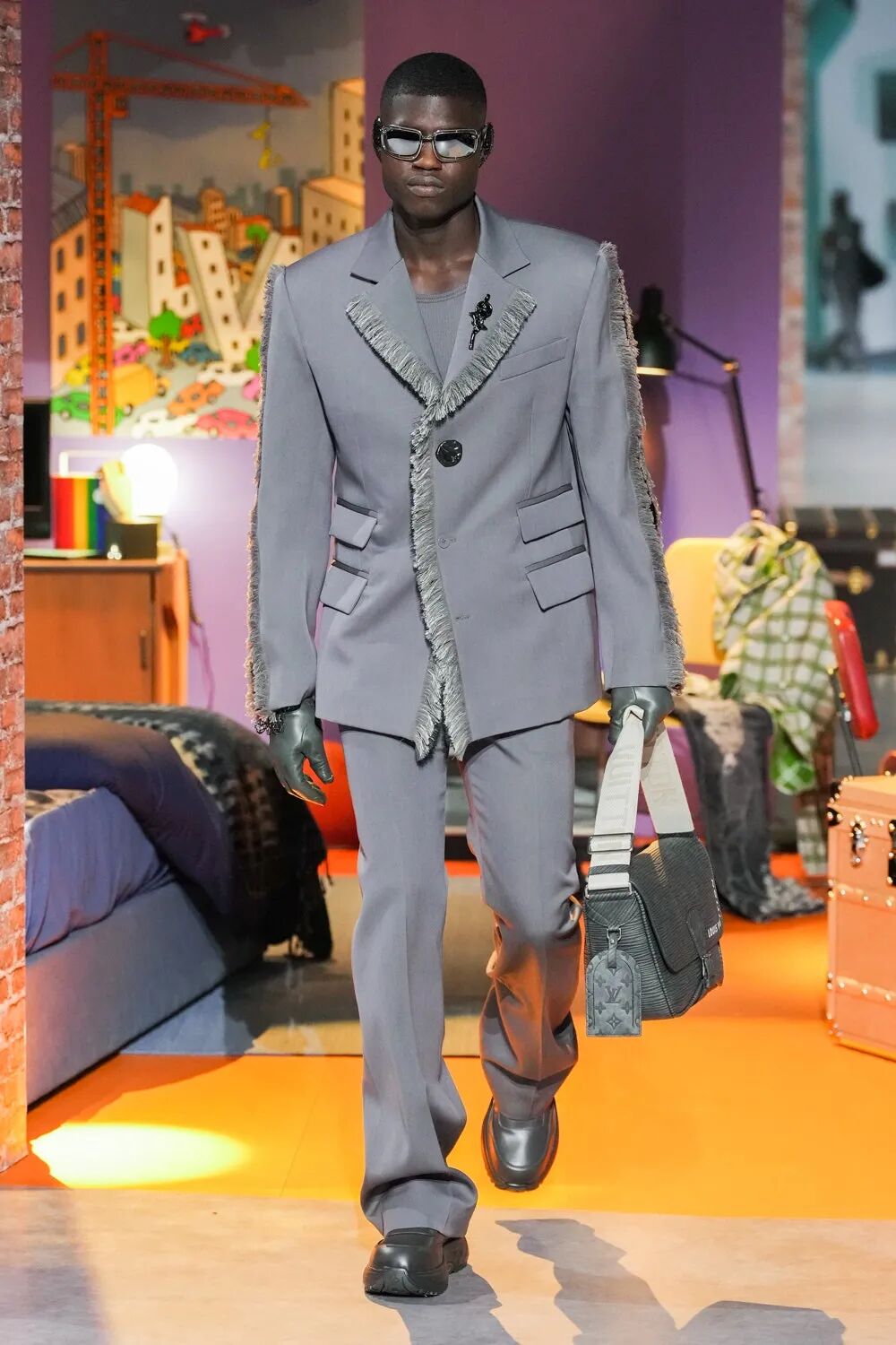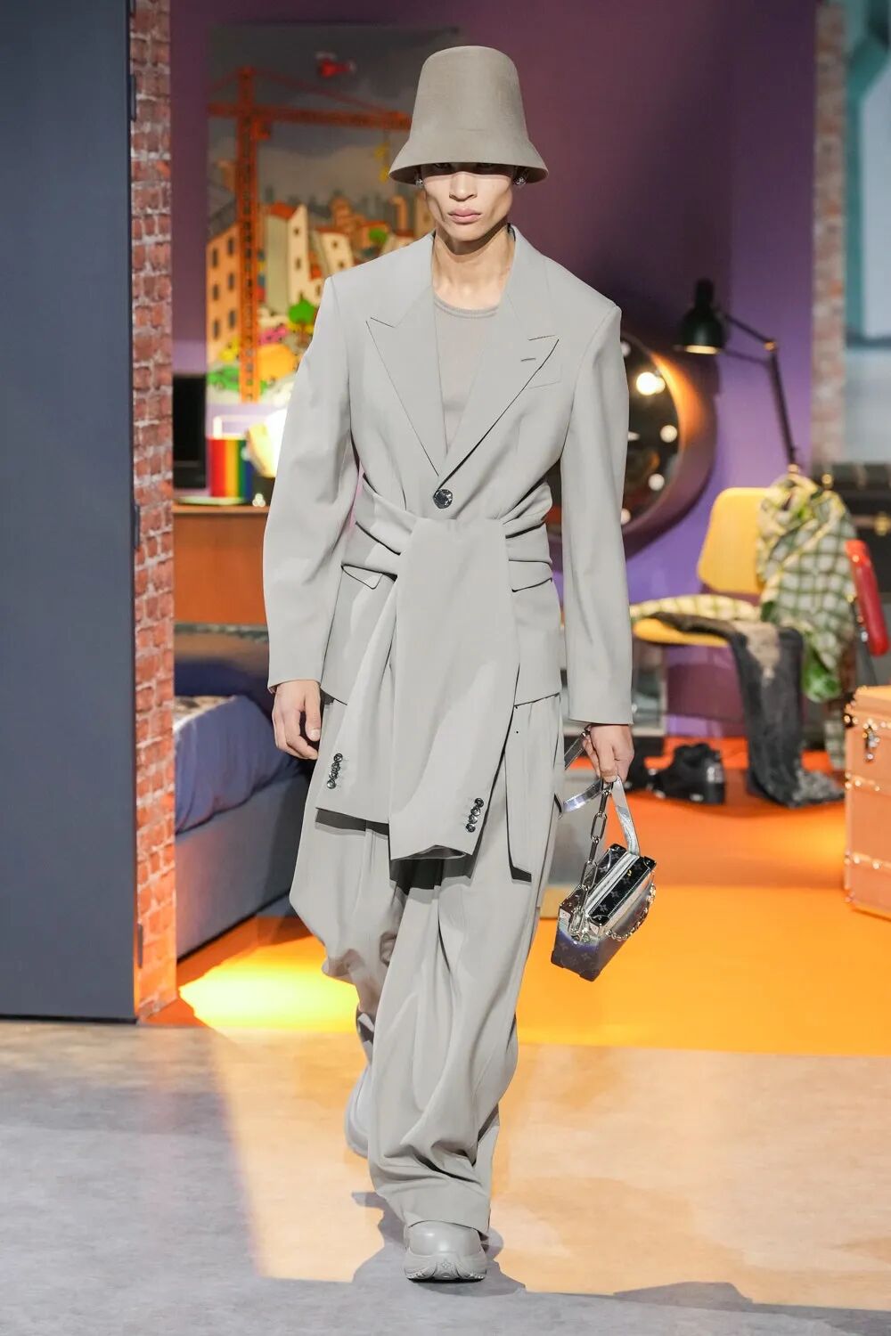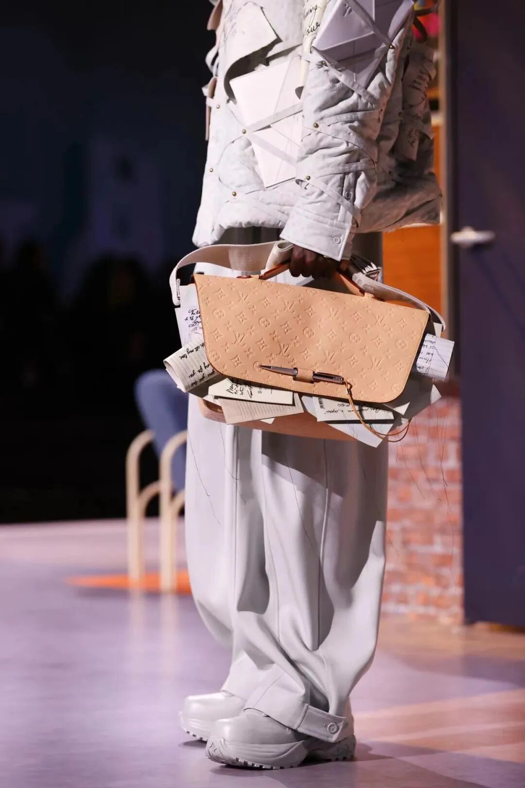 帽子部分以各式创意进行谱写,颇具特色。经典手袋在本季被赋予了新面貌,拼贴、金属色和镜面抛光等多元材质纷繁变奏,突破陈规旧制,为Louis Vuitton悠远的箱包历史。