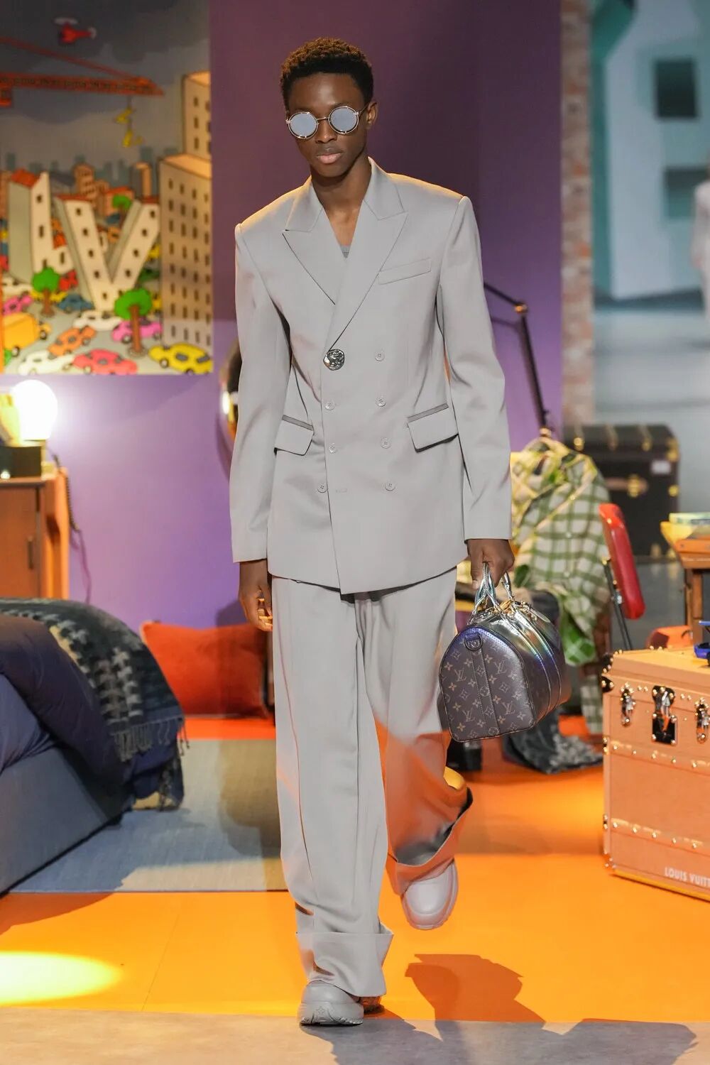 创意团队将本次的品牌LOGO进行了时装化演绎,LV 标志性的字母图案通过满幅的提花、印染或以像人脸的树干纹理等形式设计,将工艺与细节完美融合,增添别致的设计感。