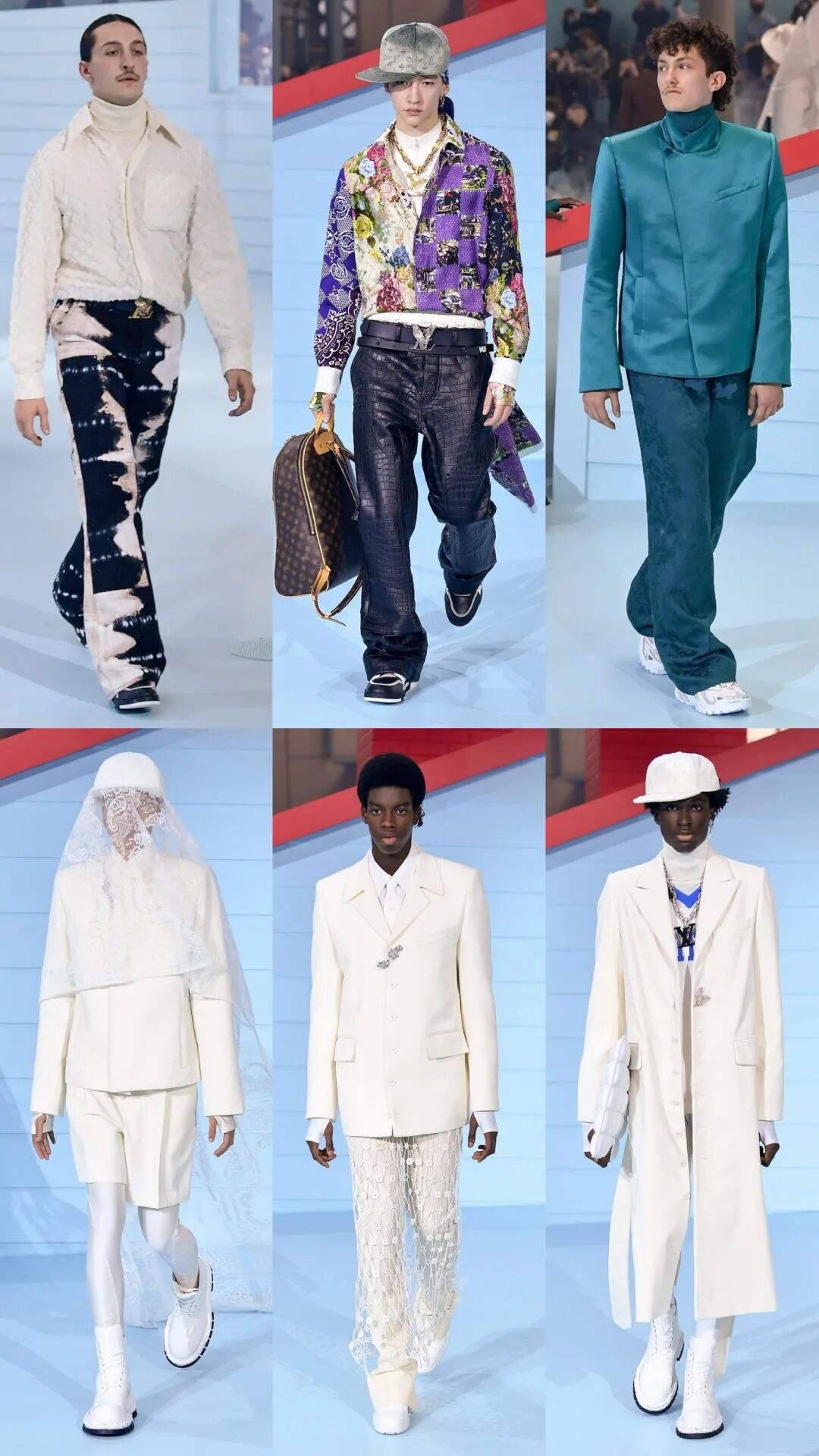设计上,Virgil Abloh 深入人心的风格依旧延续,本季的亮点更是不乏:油漆桶手拎包、长筒高跟鞋、耀眼的紫色、素白的蛋糕裙、以及最末尾的一系列白色蕾丝翅膀…当 Louis Vuitton 男装部全体成员出来谢幕之时,感动依旧…