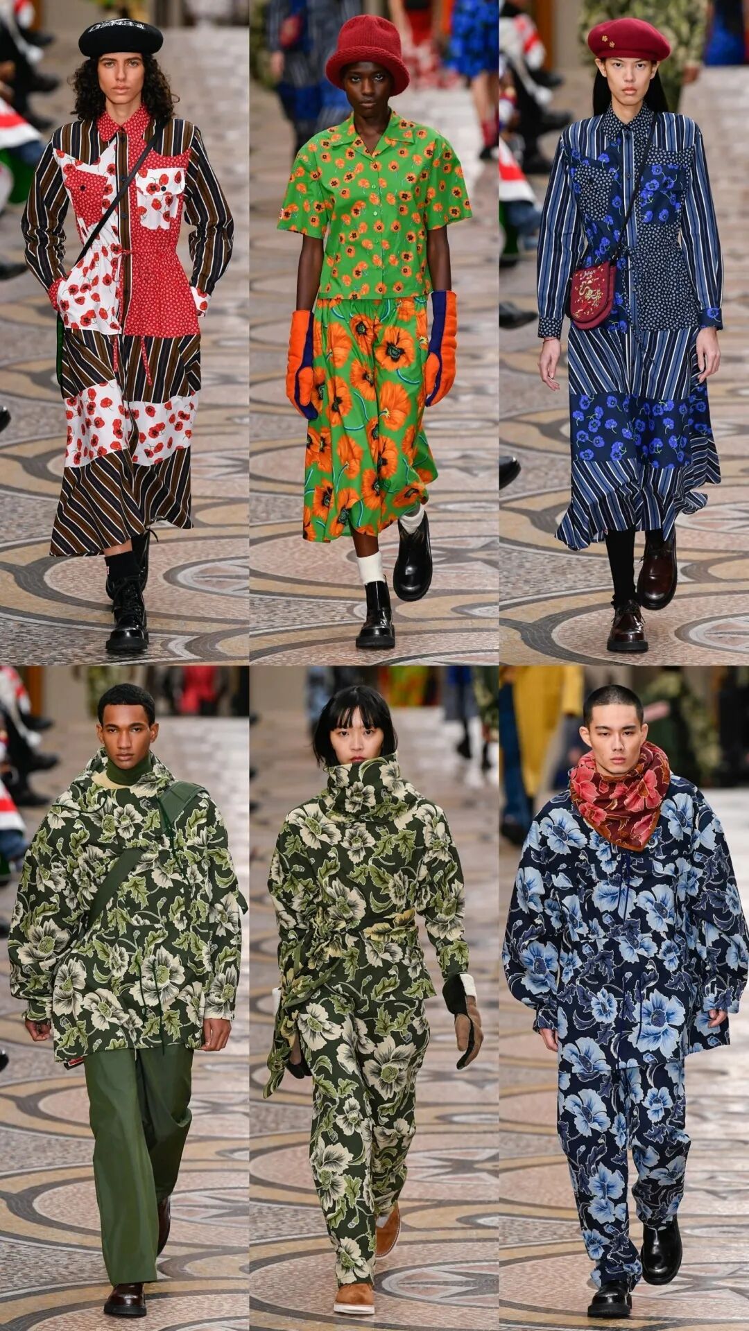 这是潮流教父 Nigo 担任艺术总监为 KENZO 交出的第一份成绩单,眼花缭乱的图案从头到尾覆盖,色彩斑斓的花卉印花让人看了心花怒放,结合格纹、条纹一同呈现出一季视觉丰富的男女装系列,是你喜欢的样子吗?