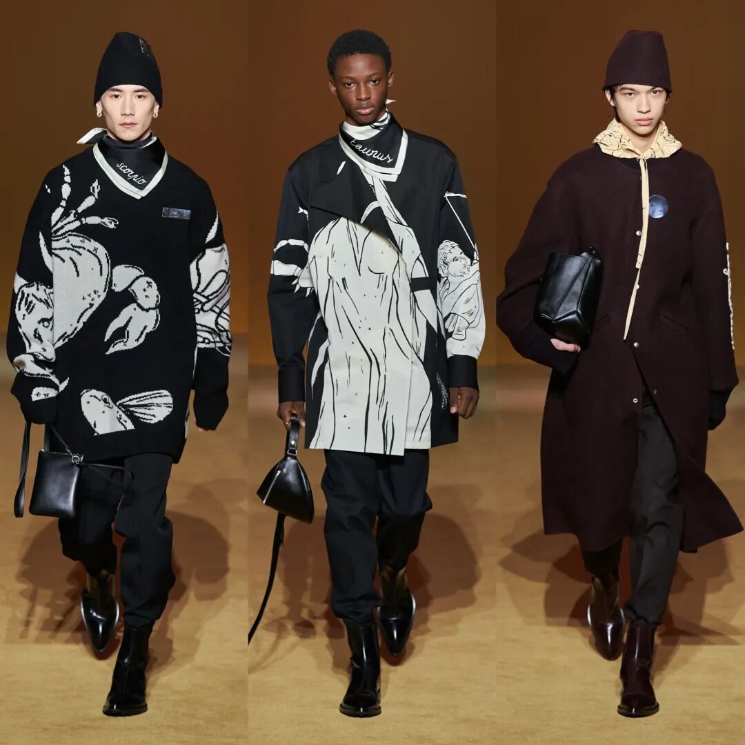 男装创意总监 Véronique Nichanian 本季将爱马仕男装打造得更加年轻率性,丰富的材质与面料肌理碰撞出暖男质感,混入土黄、绿色、橙色点缀其中,将男士衣橱塑造得格外高级大方。