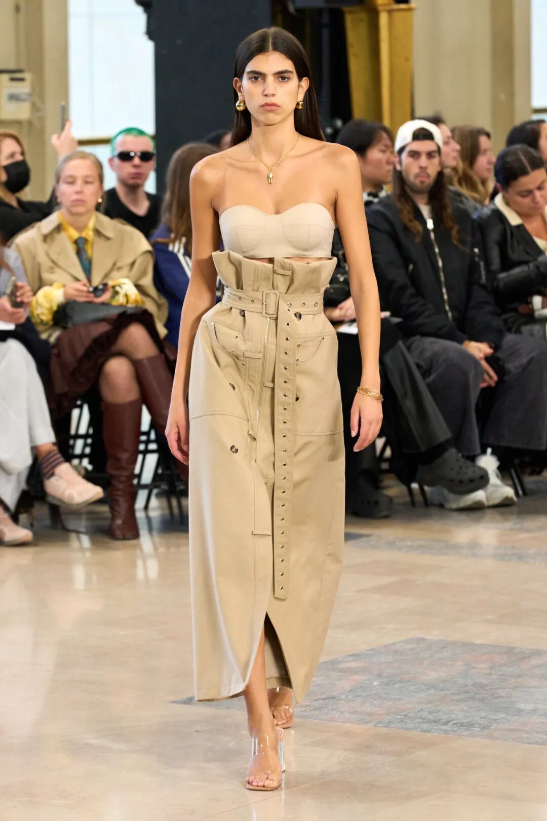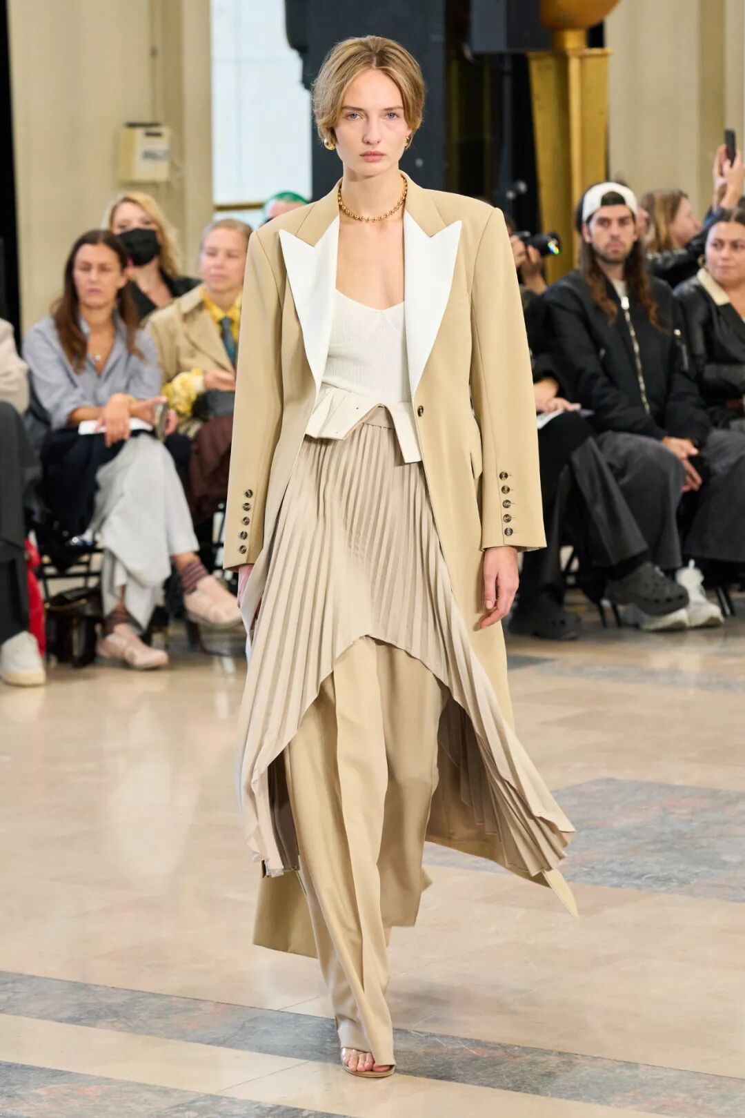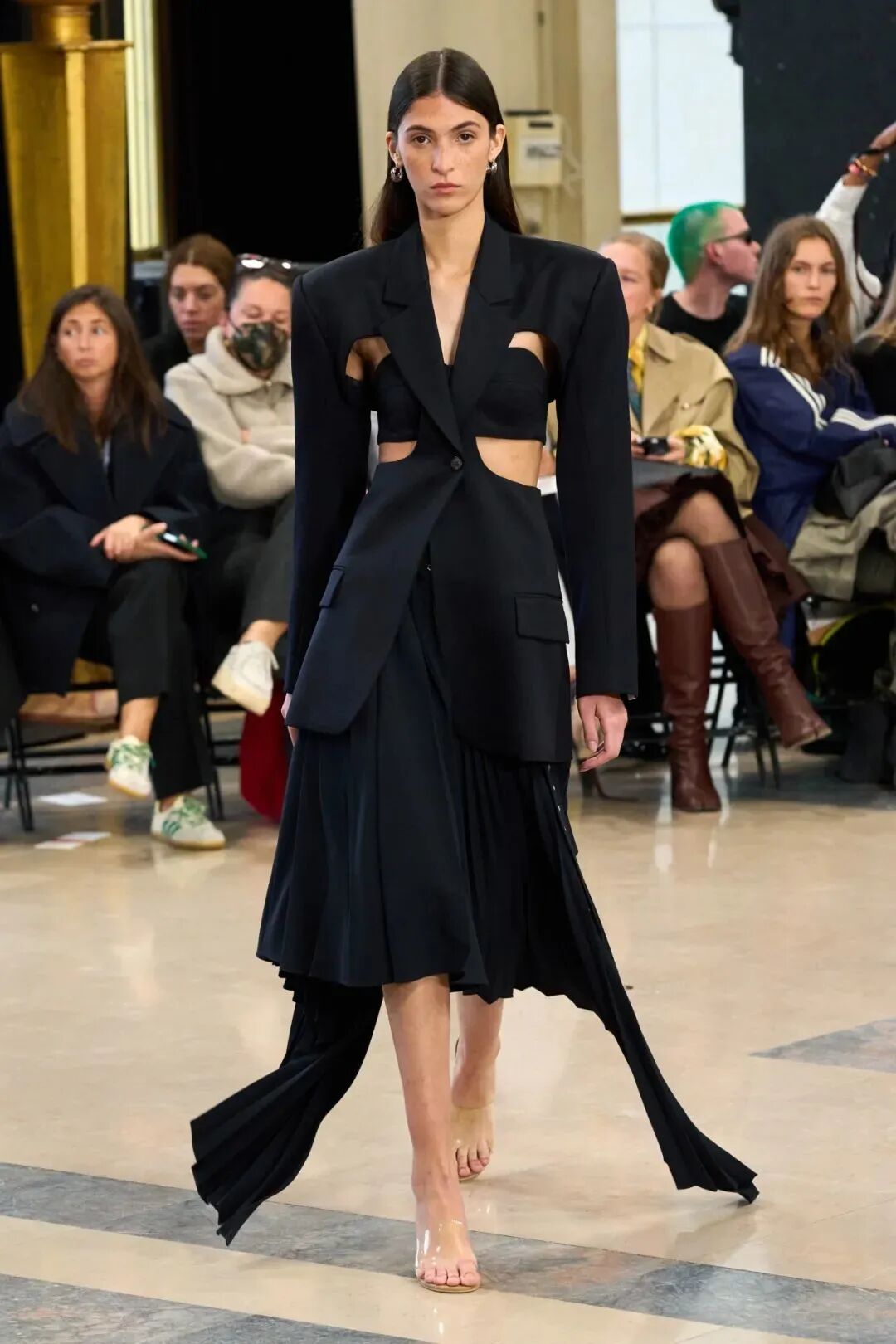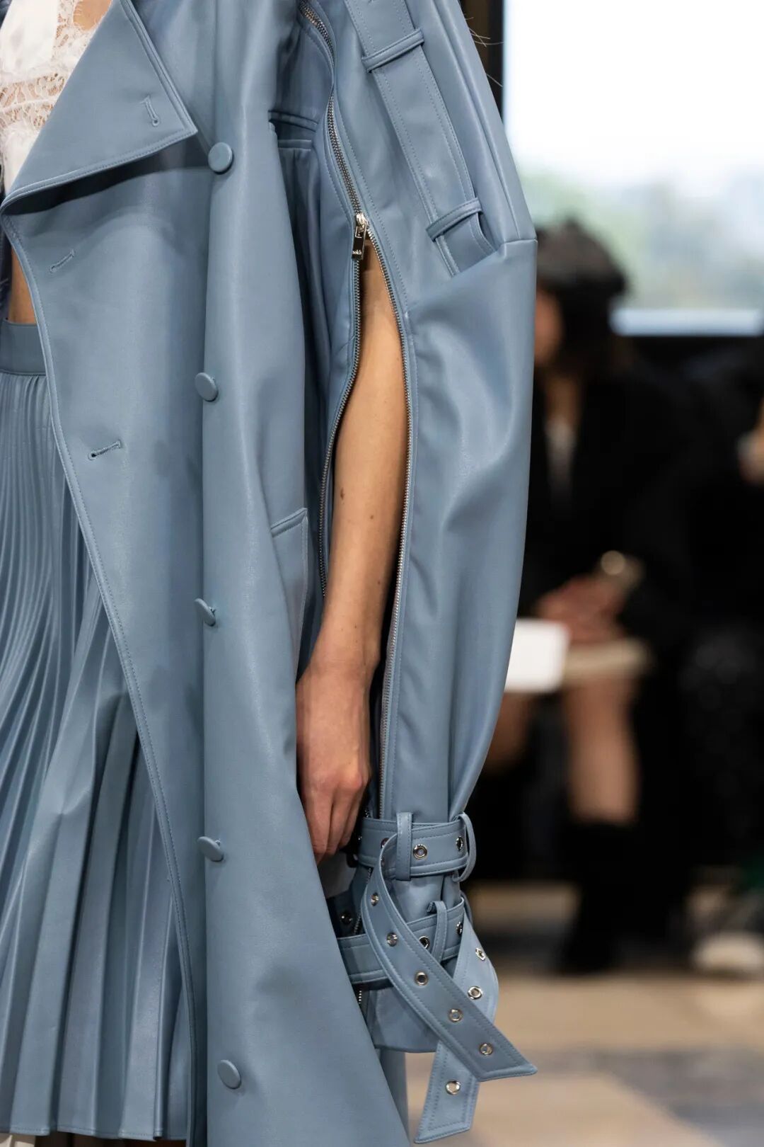 Rokh 2023春夏系列以「irrational view非理性观点」为主题,延续设计师最擅长的解构设计,将风衣重组成高腰裙和短款上衣的叠搭;或干脆剪裁成短夹克、贴身长裙。飘带、褶皱元素为整体增添有趣又优雅的装饰。