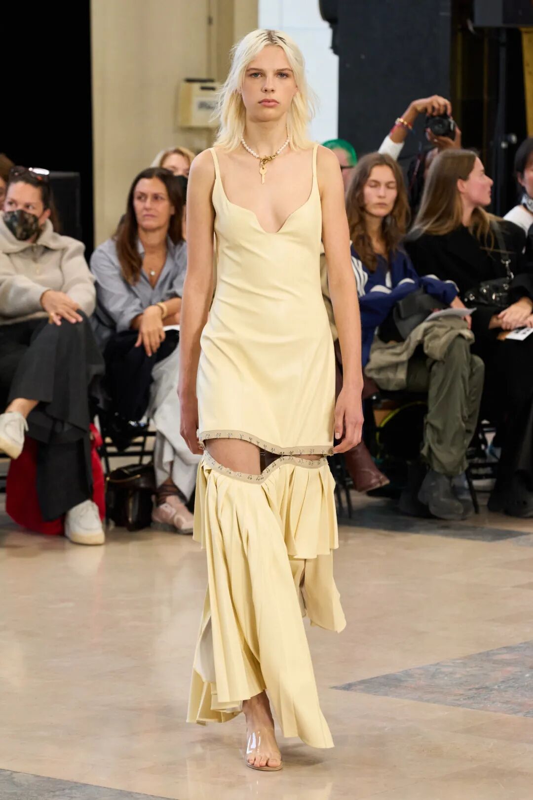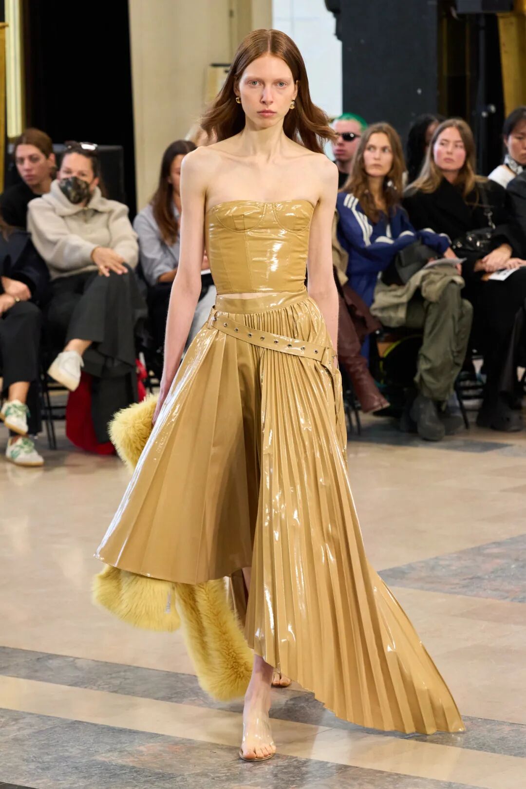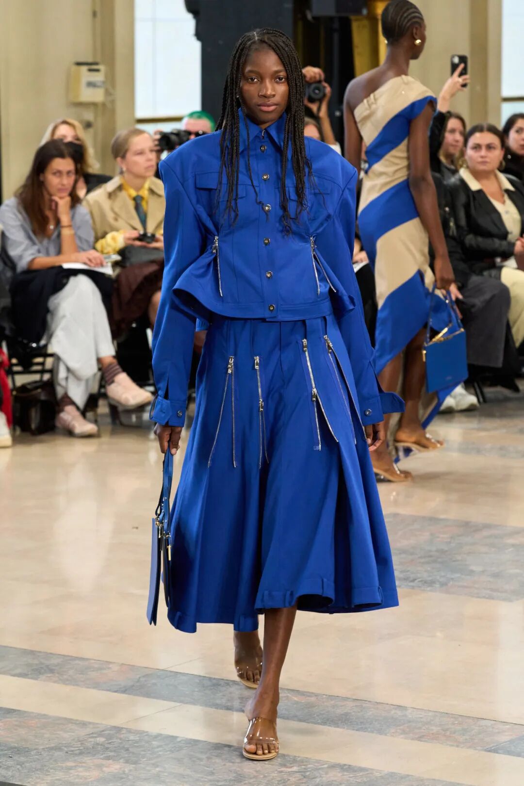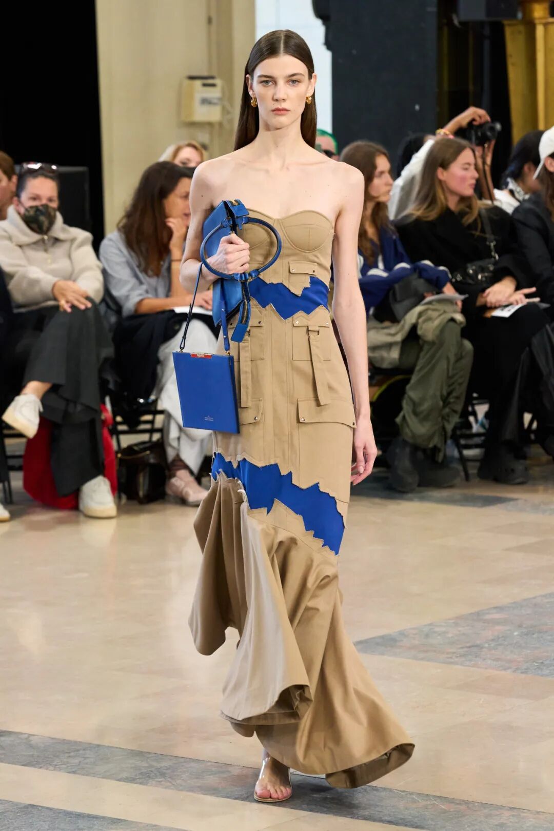 Rokh 2023春夏系列以「irrational view非理性观点」为主题,延续设计师最擅长的解构设计,将风衣重组成高腰裙和短款上衣的叠搭;或干脆剪裁成短夹克、贴身长裙。飘带、褶皱元素为整体增添有趣又优雅的装饰。