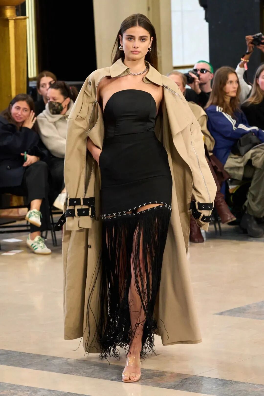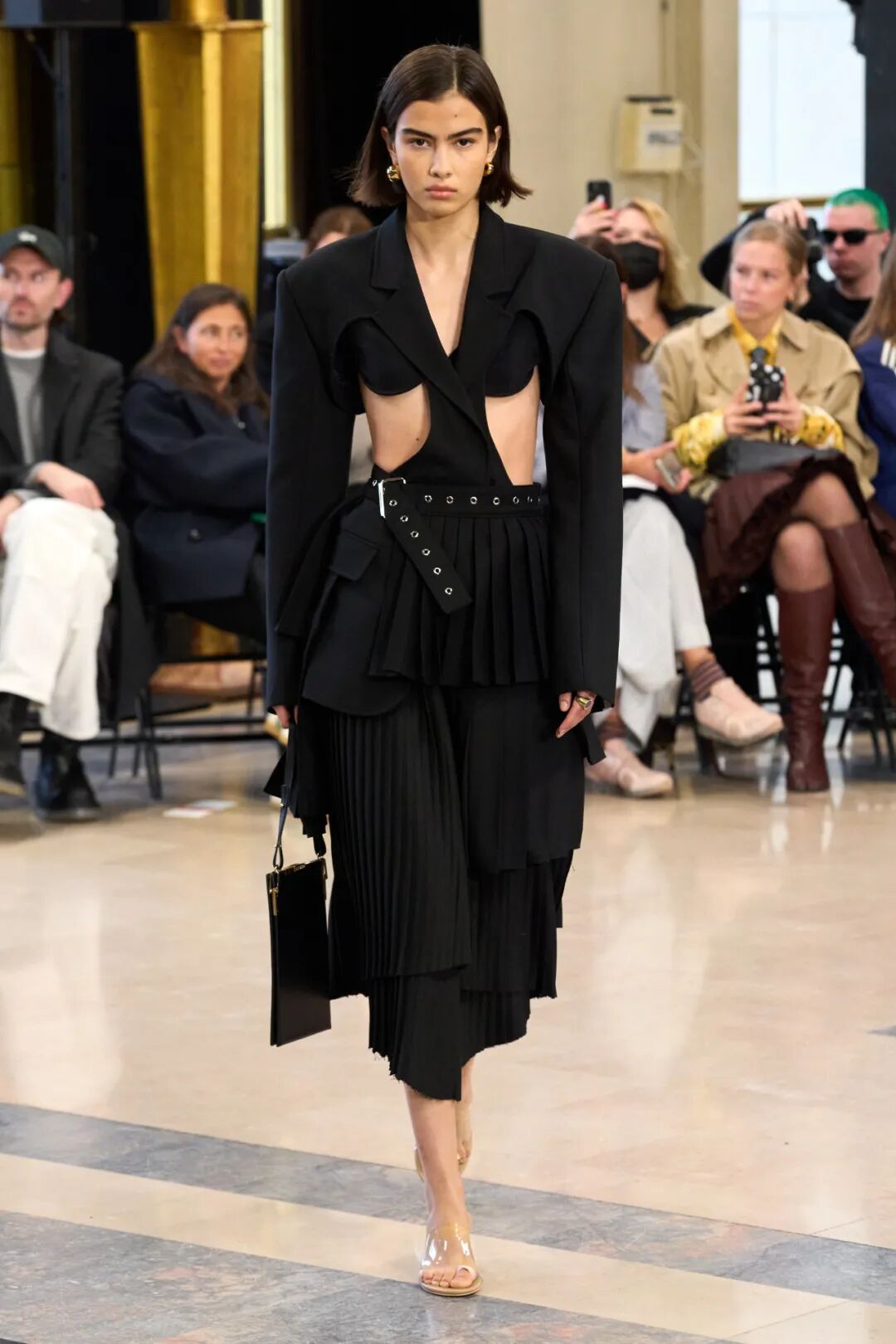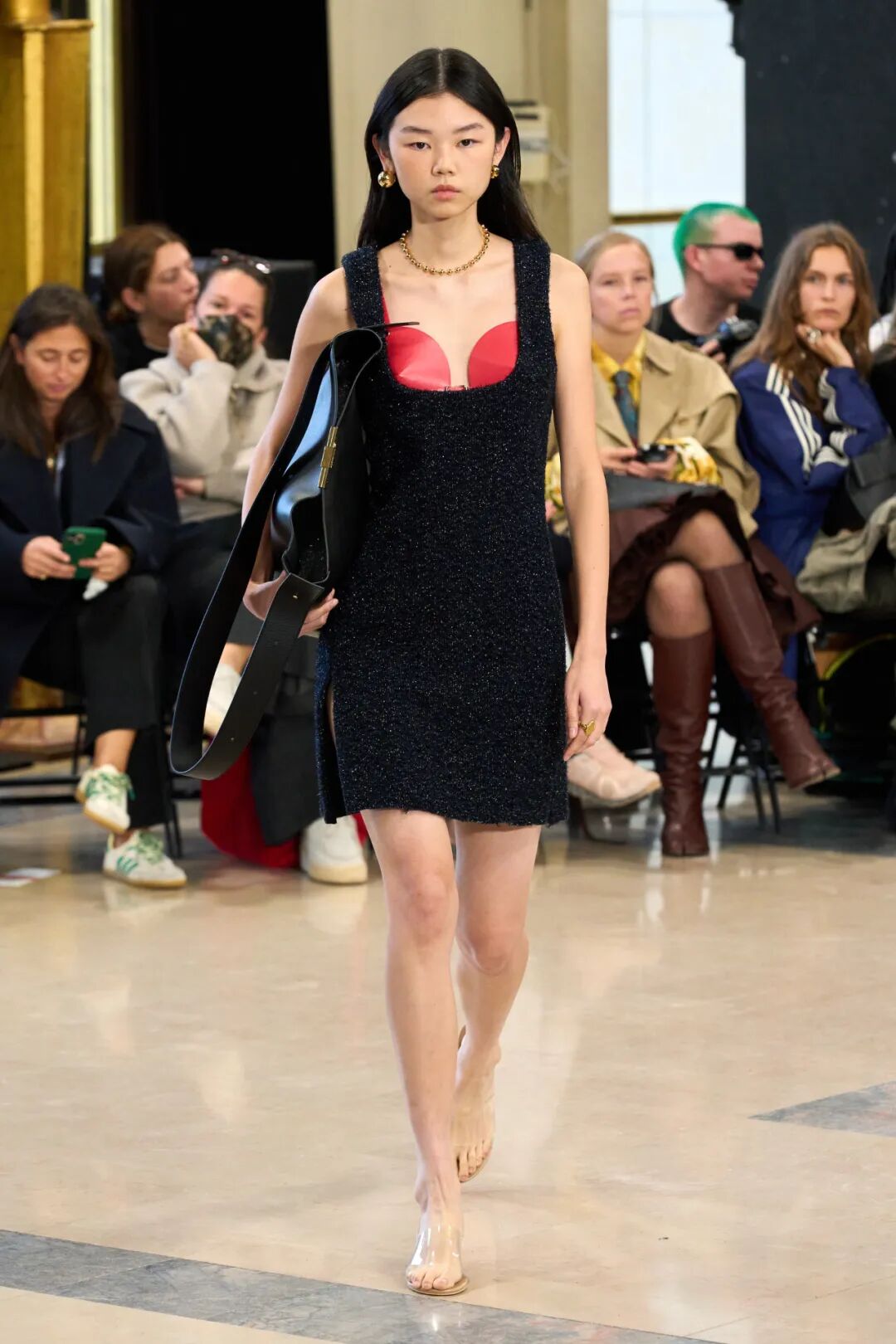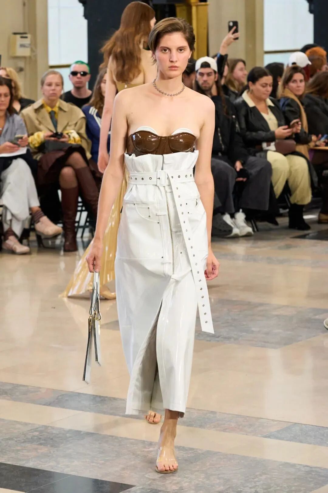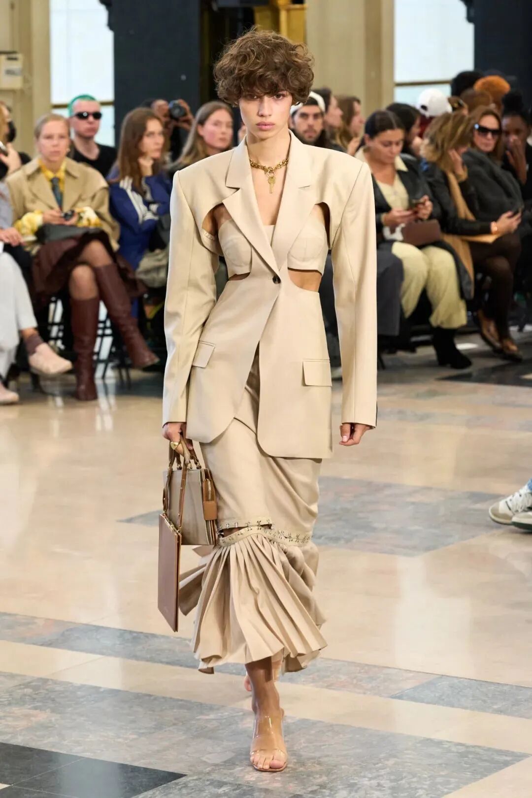 各种元素的碰撞,让整个画面酷飒感十足的同时又极具设计感,而手工感分割线更是让整体又增添了丰富感,呈现出优雅高级又有创意感的时装美学!