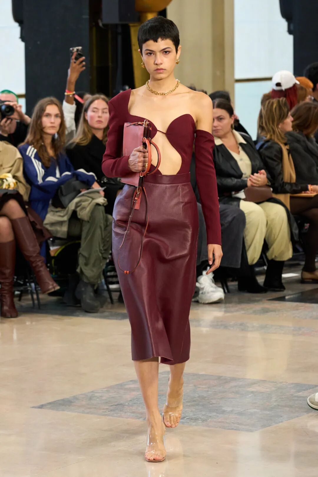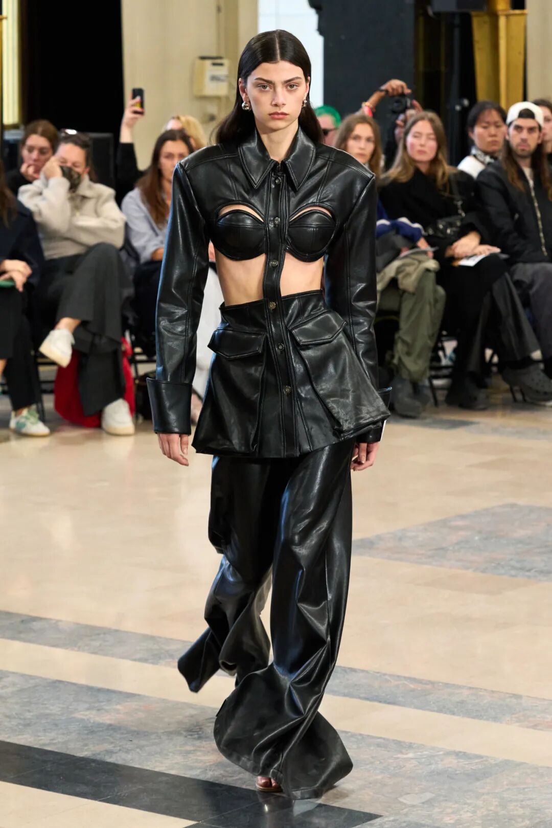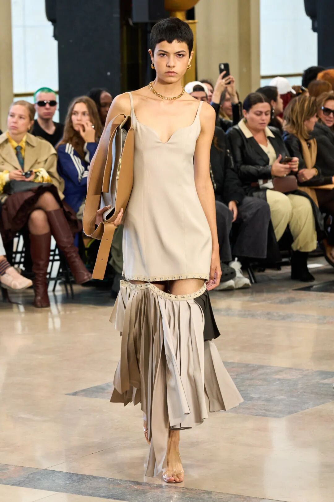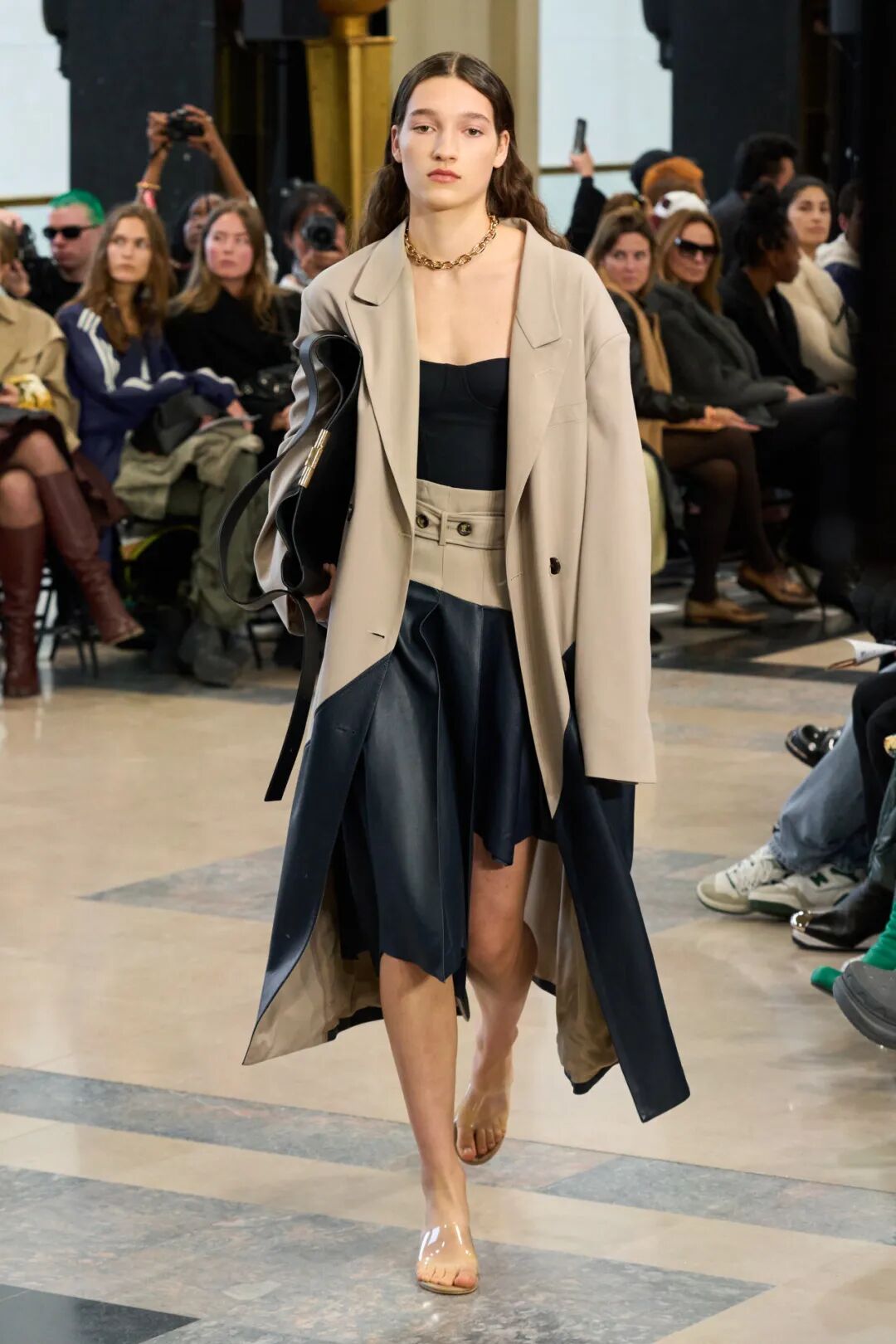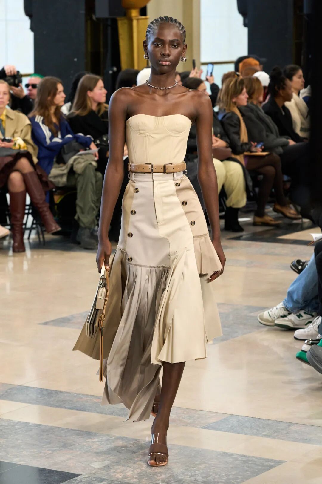 各种元素的碰撞,让整个画面酷飒感十足的同时又极具设计感,而手工感分割线更是让整体又增添了丰富感,呈现出优雅高级又有创意感的时装美学!