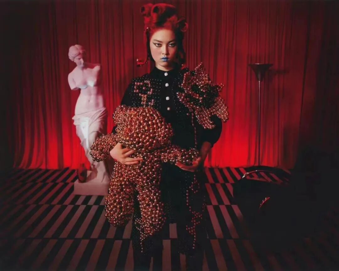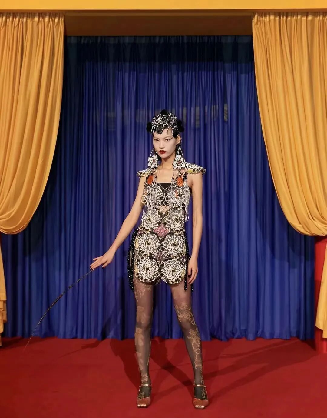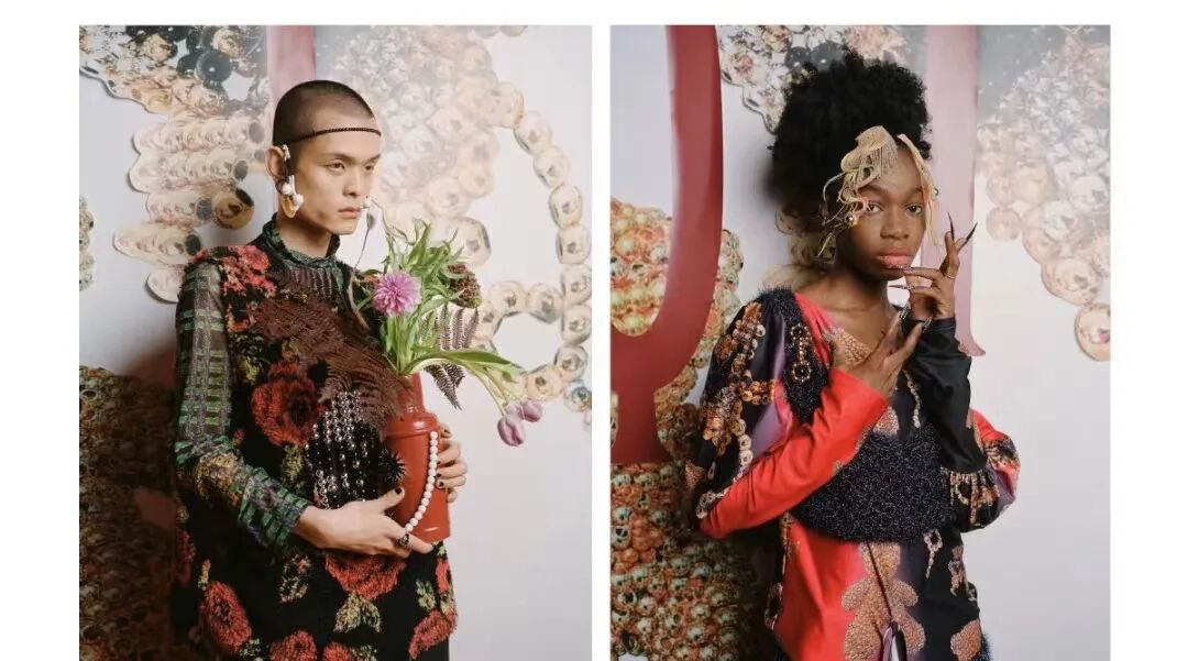 YUEQI QI运用大量的珠子编织和面料改造的技术,凭借独创的珠串梭织技术对传统与本能信念进行诠释,将中国传统元素中的浪漫与美感注入服饰之中,创造了一个风格迥异的女装设计文化。