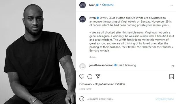 2019年他被评选为2019最佳男装设计师,也正是在他事业顺风顺水的这年,Vigil Abloh被诊断出患有心脏血管肉瘤。今年七月,LVMH表示将收购Off-White商标所有者的所有股权,同月Vigil Abloh入驻小红书平台,第二天在北京举办了Off-White时装秀......