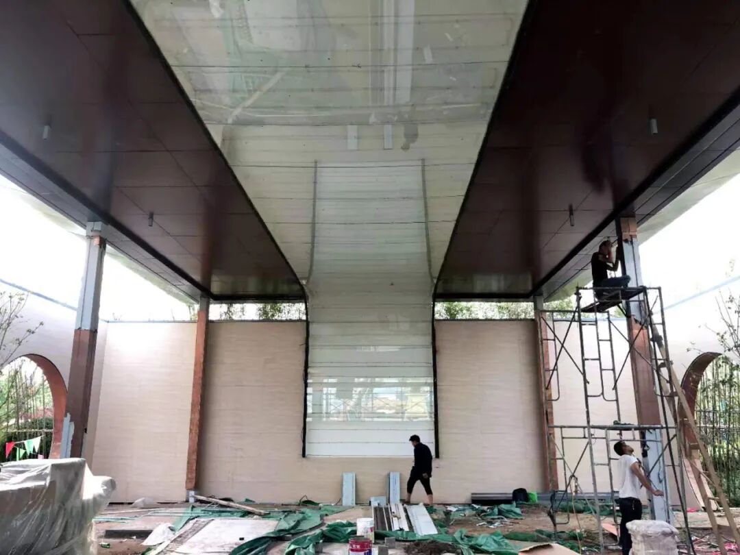 “当时做天津芙蓉公馆项目,设计院在设计大门时非常创新大胆,从气势宏大的门洞进入,用卷轴承接了半室内的空间。但如何体现卷轴的飘逸感与绵延感是个难题。其实那时我已经不实际负责项目,更多的是把控。但入口处还是由我亲自做了深化。过程很曲折,不过最后出来的效果还算不错。项目也获得了当年53个示范区评比的第一名。”刘金峰分享道。