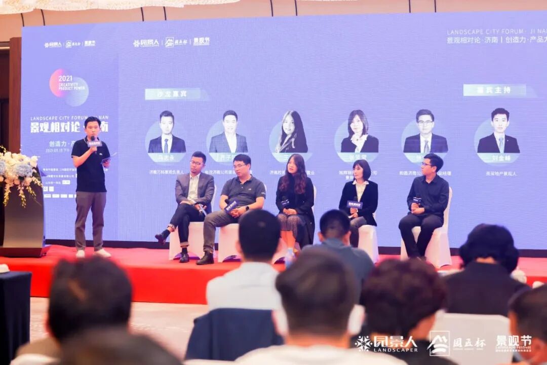 回到家乡济南后,刘金峰针对济南地产景观发展现状做了充分调研,对标郑州、西安、重庆、成都等城市,明确城市间差距。2021年5月,为提升行业认知,共同打造富有创造力与产品力的景观体系,刘金峰特邀「园景人」平台团队前来济南,组织举办了“景观相对论·济南站”行业论坛,在行业内引发极大反响。
