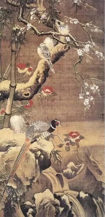 古人虽有吹云弹雪之说,但渲染挤压留白仍然中国画最常见的技法,徐熙《雪竹》当属雪景花鸟巅峰之作,至今无人突破,尝看到以胶隔离仿之,均不得要领。细数历代雪景花鸟画家,当属吕纪了,吕纪较徐熙之雪景显得更为放开,留白是其主要手法,白粉渲染也常用,但略显紧张,总之无论水墨雪景还是重彩雪景开一时之新风,其手段影响至今,追者甚众。