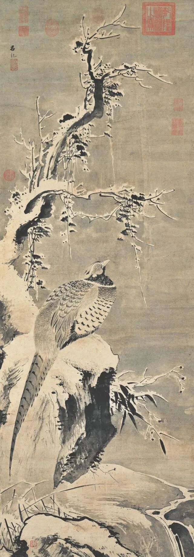 明 吕纪 寒雪山鸡图 台北故宫
