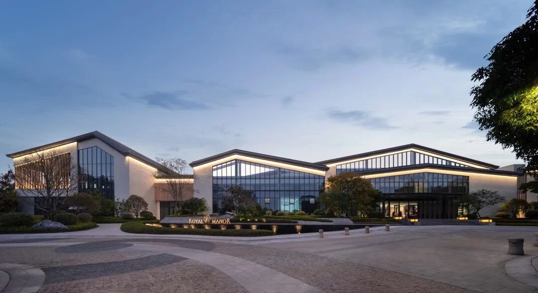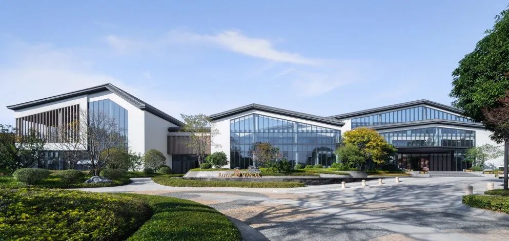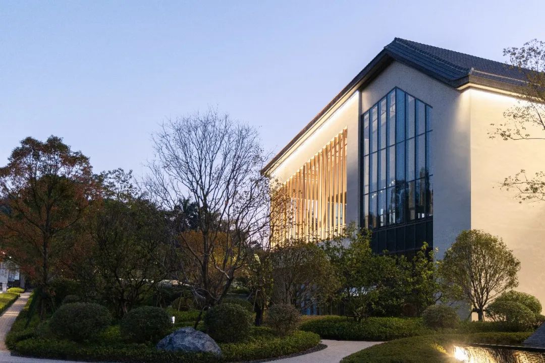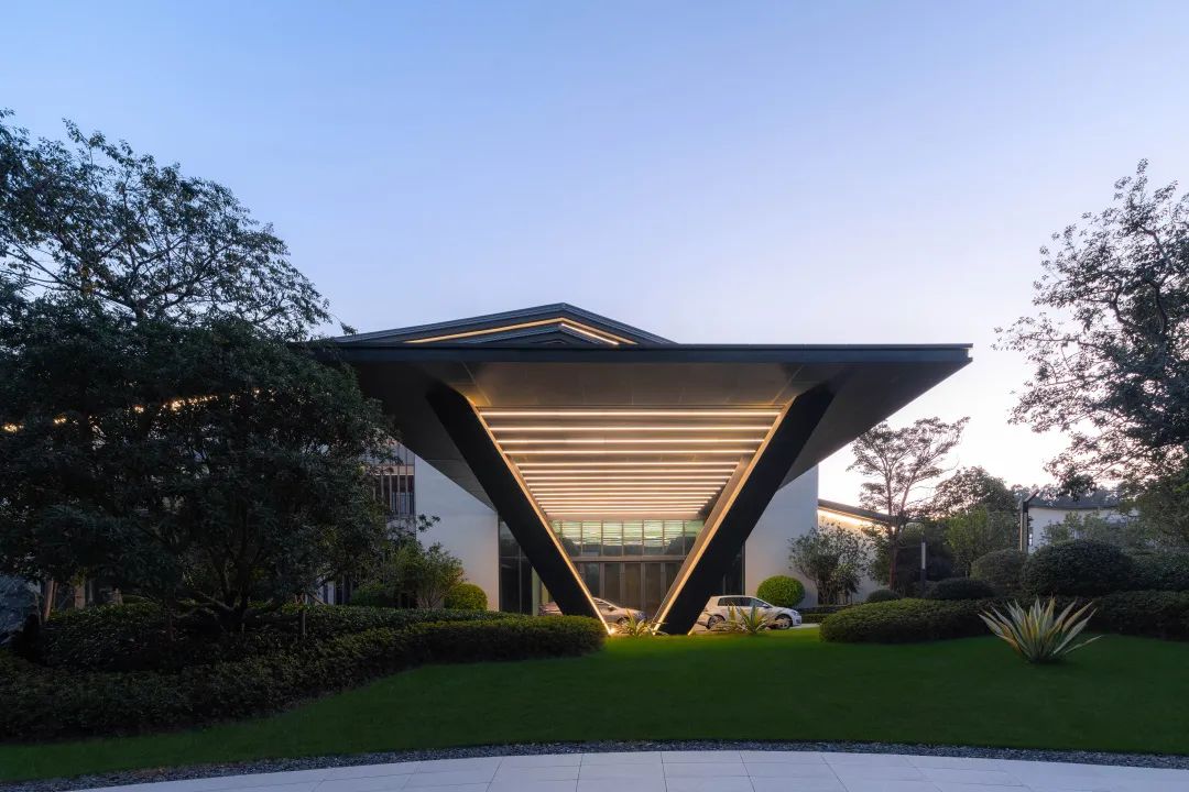 立面风格简洁现代,精致静逸,几何的表达、阶梯状流线的空间感、精致的艺术涵养与美感流露于只言片语。秉承精工技艺雕琢艺术的纯粹之美,用现代结合新中式手法创新造型设计。建筑与线条,光影互动,形成自由流淌的艺术空间,营造出静谧轻松的度假空间。