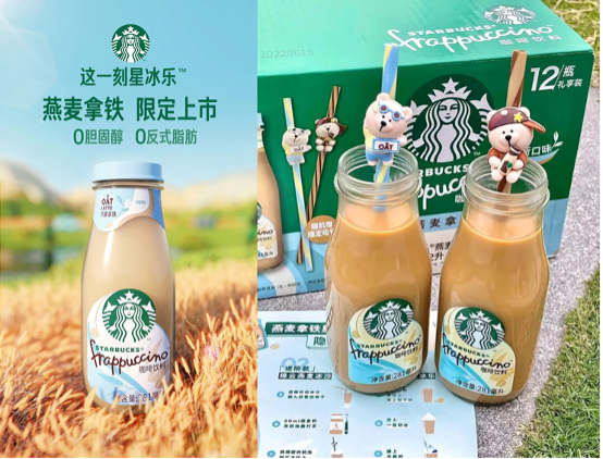 星巴克近期全新上市的明星即饮系列“瓶装星冰乐燕麦拿铁”即是全球首发的第一款即饮植物基咖啡饮品,也是品牌践行绿色环保使命的又一实践。瓶装星冰乐燕麦拿铁的礼盒装以“有趣+环保”的设计理念,附赠限定款熊店长可循环吸管以及隐藏喝法DIY手册。