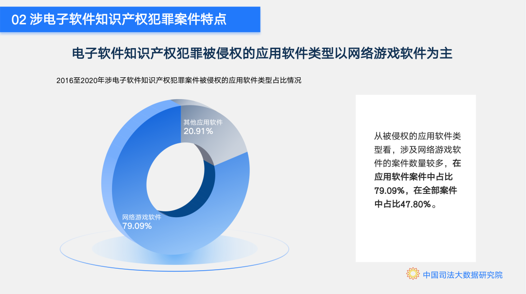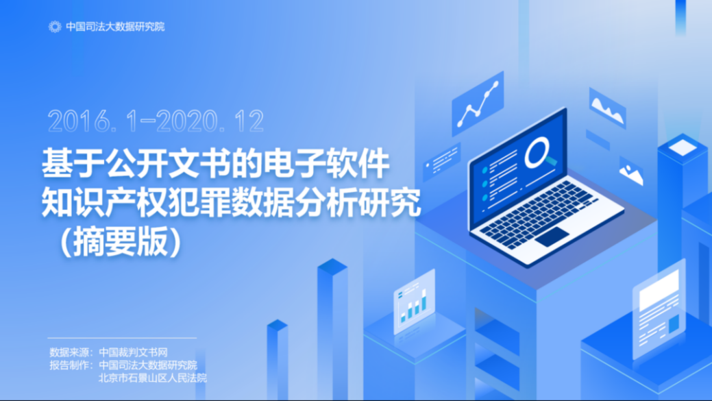 中国司法大数据研究院联合北京市石景山区人民法院依托中国裁判文书网已公开的裁判文书,对2016年1月1日至2020年12月31日期间法院一审审结且公开的涉电子软件侵犯知识产权类犯罪案件情况进行深入分析,形成《电子软件知识产权犯罪数据分析研究报告(2016.1-2020.12)》。