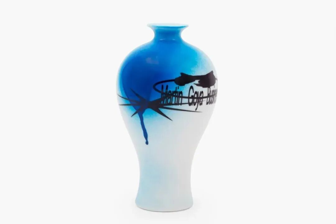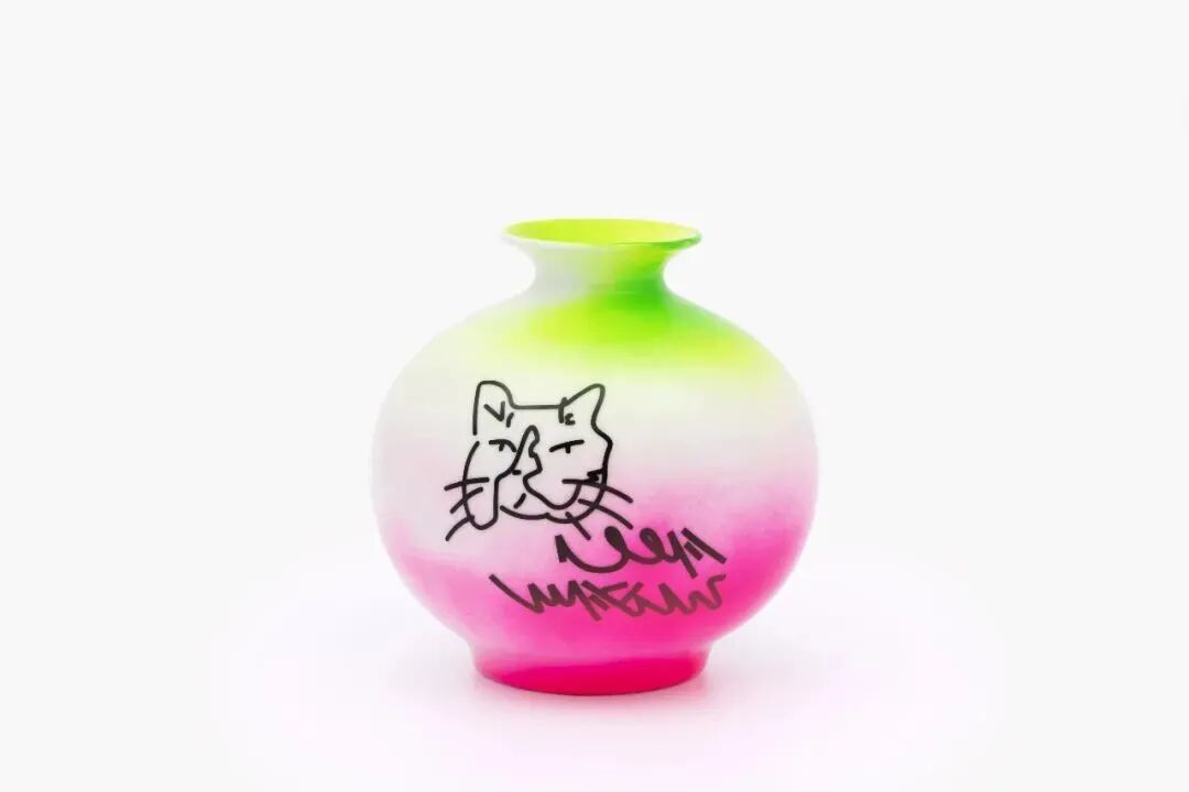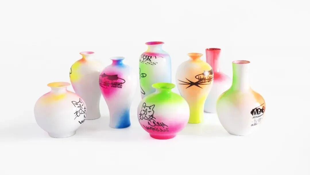 先锋与传统在M.G.B.这件作品上的碰撞并未导致不适感,设计师选择了最简单的结合方式,反而传递出非常年轻酷炫的感觉。设计师选取了具有古典雅致美的传统器型作为文创主体,在光洁的白瓷表面施以后现代风格的涂鸦、喷涂明亮的荧光色彩,令人眼前一亮。色彩被成块喷在釉面上,其形态与传统瓷器技法中的窑变效果如出一辙,但鲜丽色彩的大胆运用突出了亚文化的先锋气质,也让传统与现代的结合更为直接,也更为悦目。