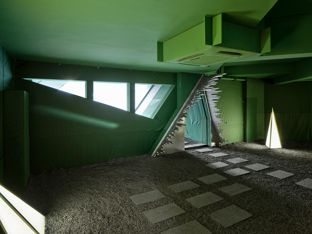 项目所在杭州西湖区的象山艺术公社,顺应山坡地形而呈现层叠错落的建造形态。设计师从非惯性设计思维或艺术美学的出发点,在完全保留原构筑体的基础框架下,将“再生”和“本能”的叙事语言和结构逻辑重新注入270平方米的空置场地,安放野性而自由生发的状态。