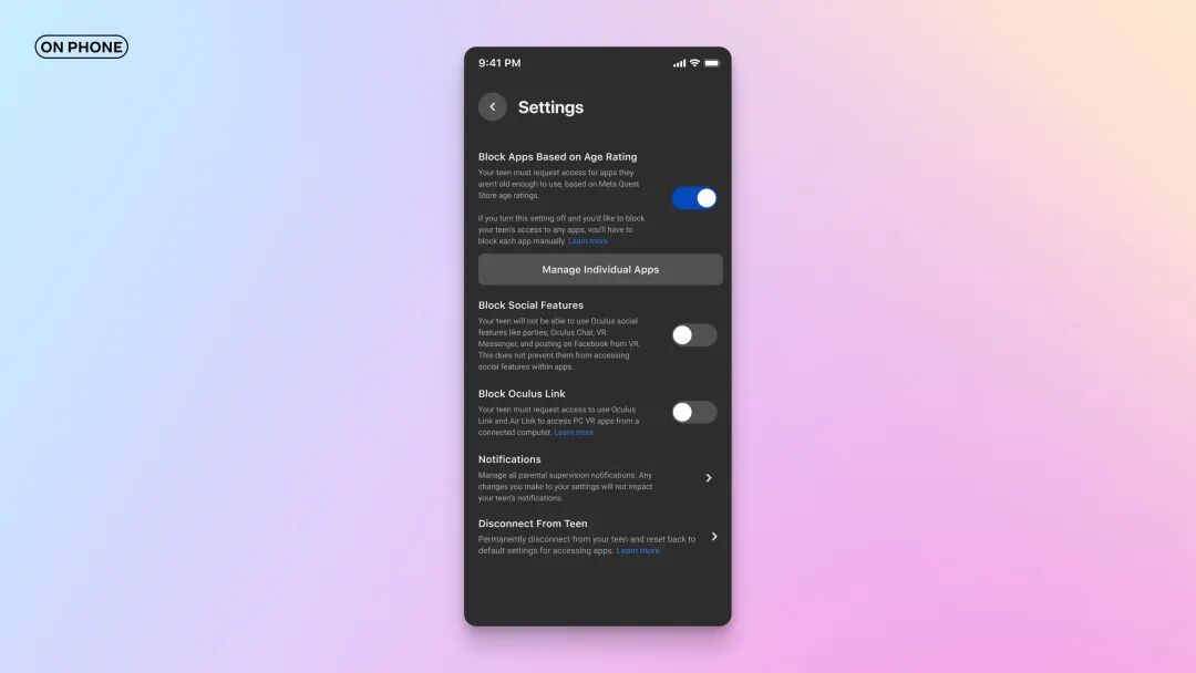关于家长监督功能,Meta在V42版本中针对社交功能增加了新设置。在监督青少年账户时,父母将能够在Oculus移动应用程序中远程启用或禁用社交功能。这包括创建和加入派对、Horizon Home社交访问、以及Oculus聊天和Messenger功能。