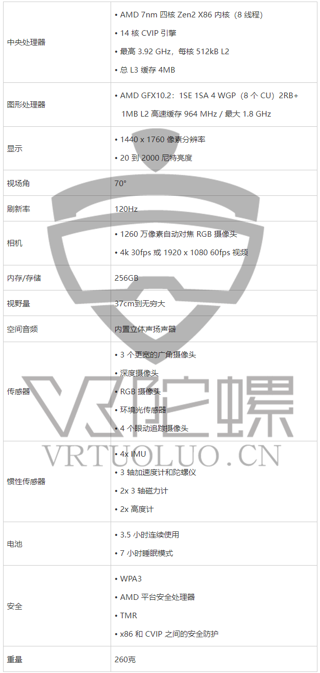 Magic Leap 2 核心参数如下: