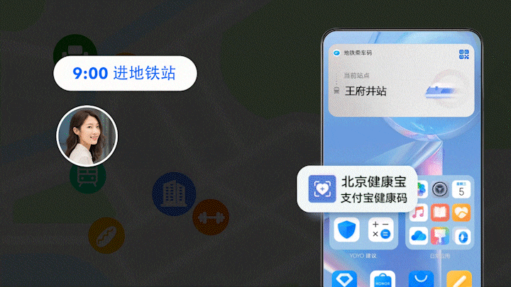 其中,YOYO建议在升级后推出了针对出行打卡、观影提醒、火车出行、充电、体育赛况、景区推荐等丰富的智能提醒,此外它还可以将多种服务进行精准的关联组合,为用户提供恰到好处的关心。比如基于用户出行方式的感知,在极短的时间内完成对地铁等各种地理围栏的构建,如果是经常地铁出行的用户在接近地铁站的时候,YOYO建议会主动弹出地铁乘车码,方便用户快速进站,从而做到精准服务。