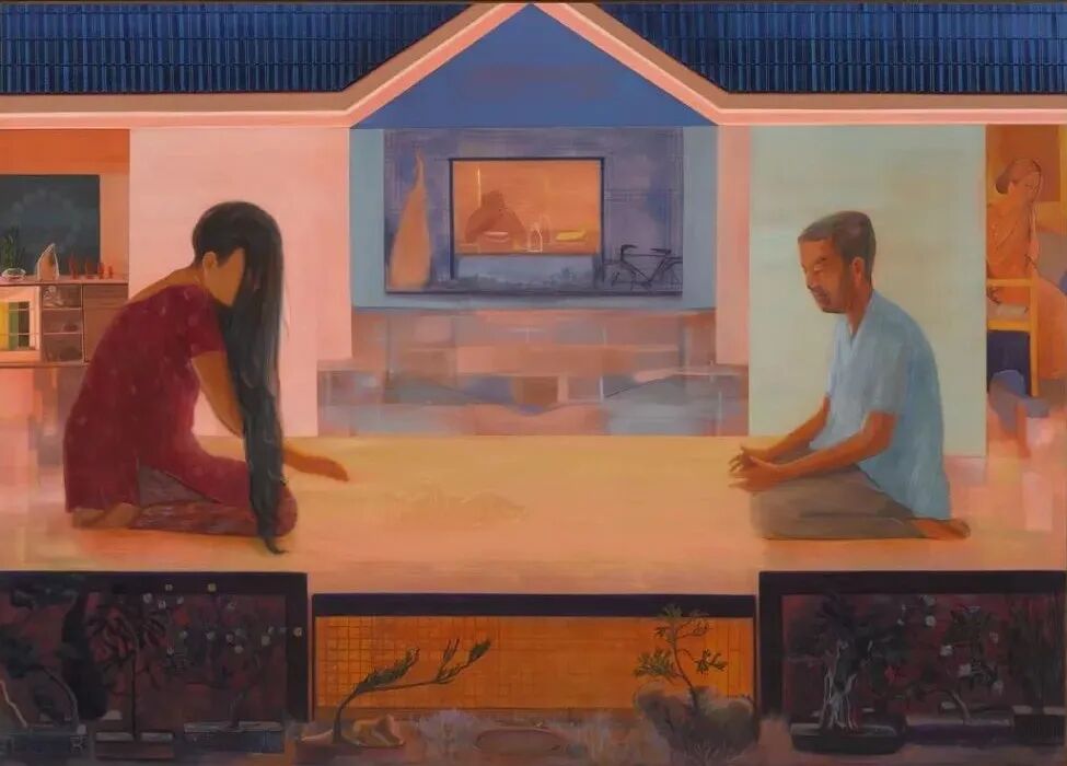 马赫什·巴利伽记录了印度西部错综纷繁的生活,为平凡琐碎、常被忽视的瞬间注入情绪共鸣。对绘画的形式建构及其心理暗示的关系倍感兴趣,他丝丝入扣地转换于真实与想象,发展出超现实的视觉效果,以此传达出记忆、个人失落和时间流逝所带来的悲戚感受。