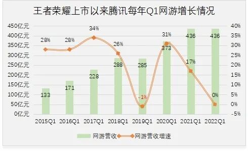 今年一季度版号并未重发,比较历年一季度情况可以看到在没有增量的情况下,腾讯在线游戏似乎正在走下神坛。截至一季度,腾讯游戏收入为436亿元,与去年Q1持平。
