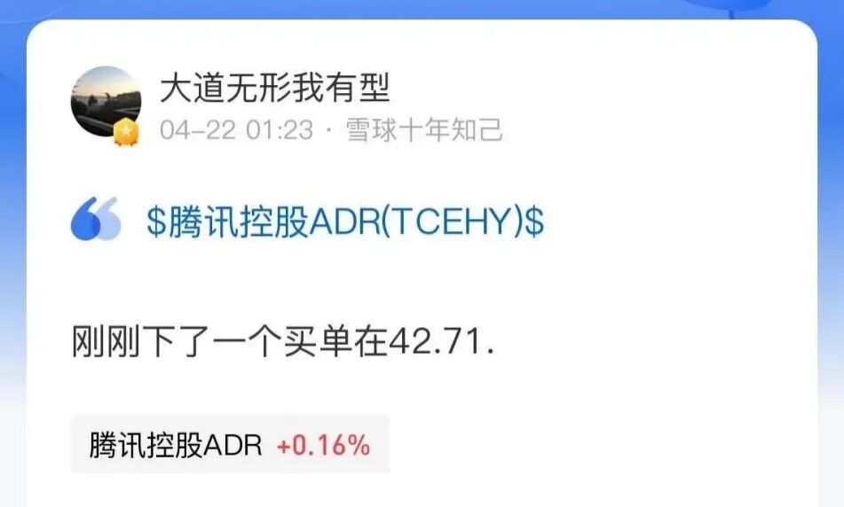 4月14日,段永平持有腾讯控股的特殊分红到账,他悉数卖掉,打算第二天all in买入腾讯控股。第二天,他在高尔夫球场试了试黑T(职业发球台),总计打了74杆,因此没有按计划买入腾讯控股。