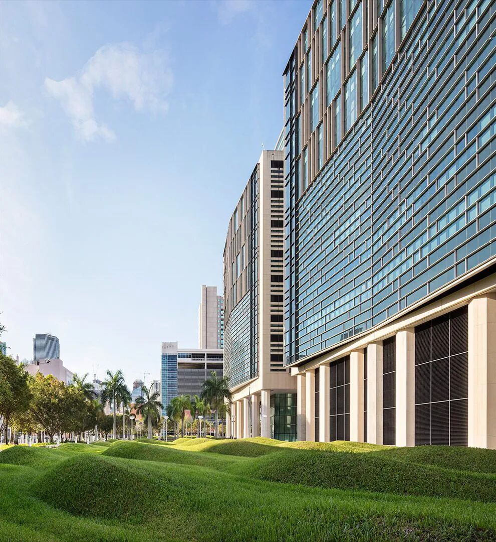 得益于开放性的设计理念,室内外互相吸引,彼此对话——从外至内,自然光将法庭空间照亮;从内至外,法官办公室可以俯瞰比斯坎湾。由此,庄严的建筑亦充满了活力,并获得了一种出乎意料的轻盈之感。