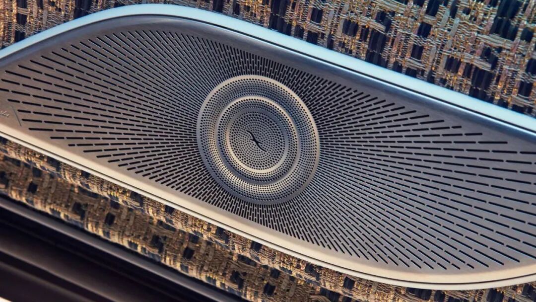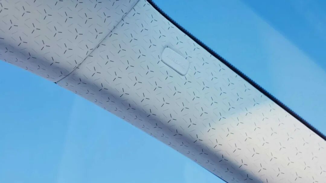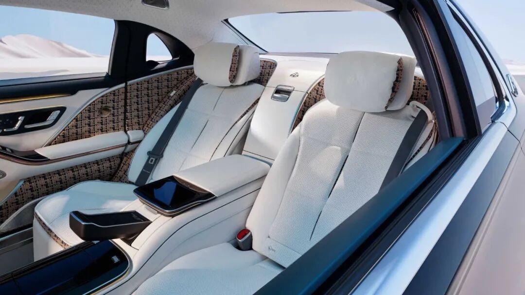 内饰沿用外观设计色彩概念,以海岳蓝色与玫瑰金色色调,搭配散发温润光泽的水晶白色,使车辆内外色彩和谐相融。受时尚界启发,由蓝色、米色、玫瑰金色和金色编织而成的Bouclé软呢织物装饰于椅套及座垫等细节处,营造视觉上的层次之美。仪表板、车门和座椅均以水晶白色皮革包裹,内嵌脚垫则由亚麻和马海毛制成,营造出舒适优雅的车内氛围。